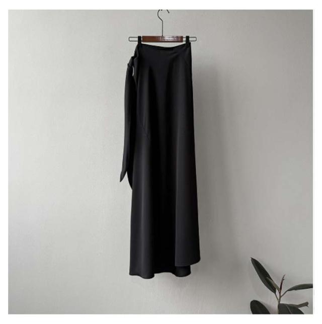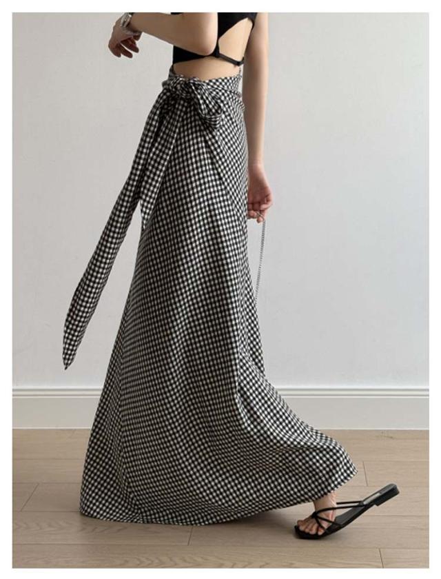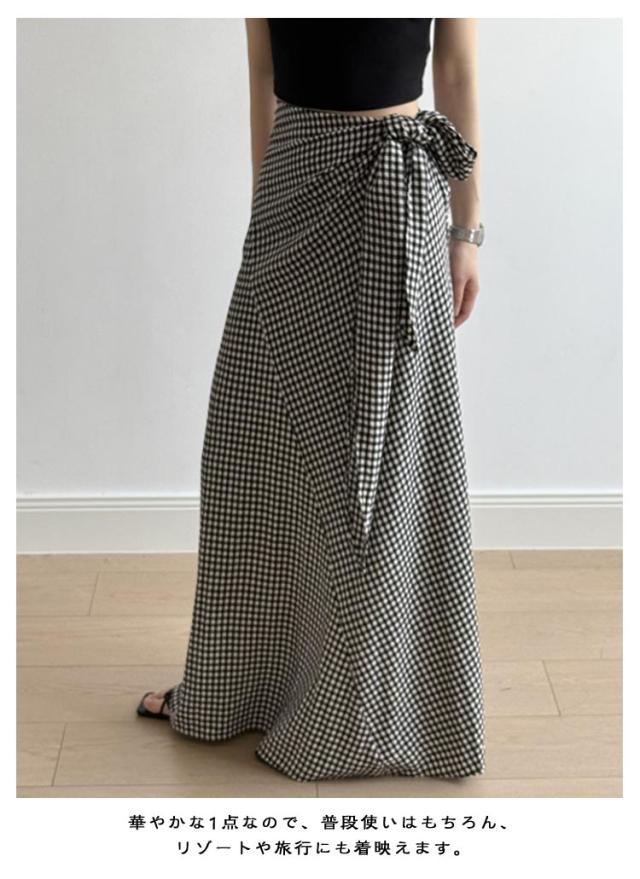 ラップスカート ラップ風スカート ウエストリボン スカート マキシスカート チェック柄 Iラインスカート マキシ シュクールスカート ロング丈 タイトスカート マキシ丈 ウエストリボン 海 リゾート 旅行 無地ブラック 黒