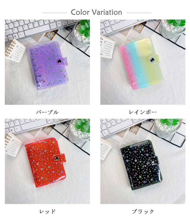 透明 バインダー 6穴 a7 システム手帳 カラフル ミニ手帳 カバー クリア 帳 星柄 推し活 女の子 キラキラ かわいい A7サイズ コンパクト