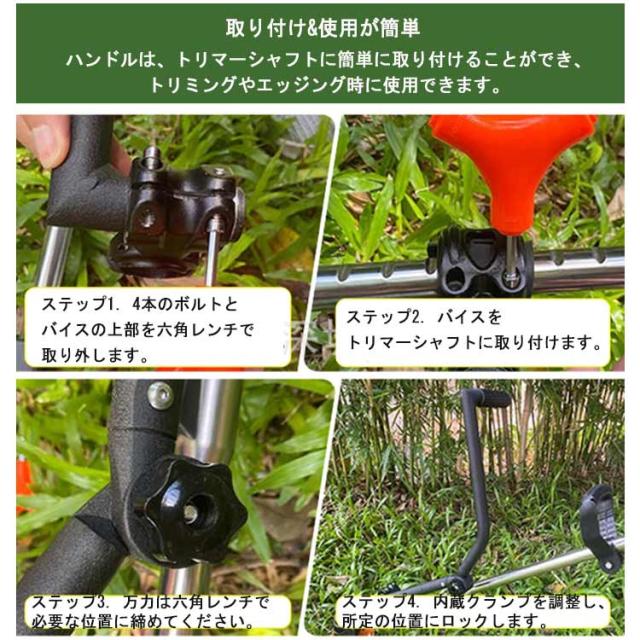| 【便利なトリマーハンドル】トリマーグリップハンドルは、雑草を食べるときに頭にかぶるよりも垂直に立つことができます。長時間トリミングする際の腰の負担を和らげます。 このグリップでエッジングやトリミングに最適です。 【取り付け&使用が簡単】ハンドルは、トリマーシャフトに簡単に取り付けることができ、トリミングやエッジング時に使用できます。 ステップ1. 4本のボルトとバイスの上部を六角レンチで取り外します。 ステップ2. バイスをトリマーシャフトに取り付けます。 ステップ3. 万力は六角レンチで必要な位置に締めてください。 ステップ4. 内蔵クランプを調整し、所定の位置にロックします。 そして、トリマーハンドルをつかみ、まっすぐ立つようにします。 【人間工学に基づいたグリップハンドル】 人間工学に基づいたトリマーグリップは、お使いのトリマーシャフトをほとんど無視できるわずかな重量を追加します。 庭のメンテナンス、芝生の手入れ、造園のためにエッジとトリムができます。 このトリマーハンドルを取り付けた後に腕や背中が曲がった場合、バイスを上下にスライドさせるだけで、 フィットする位置に向いています。 【軽量ながら頑丈な品質】 軽量ながら頑丈な合金アルミ素材でできたこの雑草取りグリップハンドルは、非常に丈夫で頑丈で、芝生のお手入れのスペシャリストとして、また家庭の芝生の手入れ作業者として日常の雑草を食べても使用できます。 変形やサビがありません。 割れにくい。 【腰痛なし】トリマーハンドルグリップは、ほとんどのトリマーシャフトにフィットします。 ヘビートリマー、ライトトリマー、除草機に適しています。 このトリマーグリップハンドルでトリマーをより人間工学的かつ快適に使用できるプロフェッショナルなデザインです。 エッジングやトリミング中の腰痛はなく、常に真っ直ぐ立ち続けます。 | |