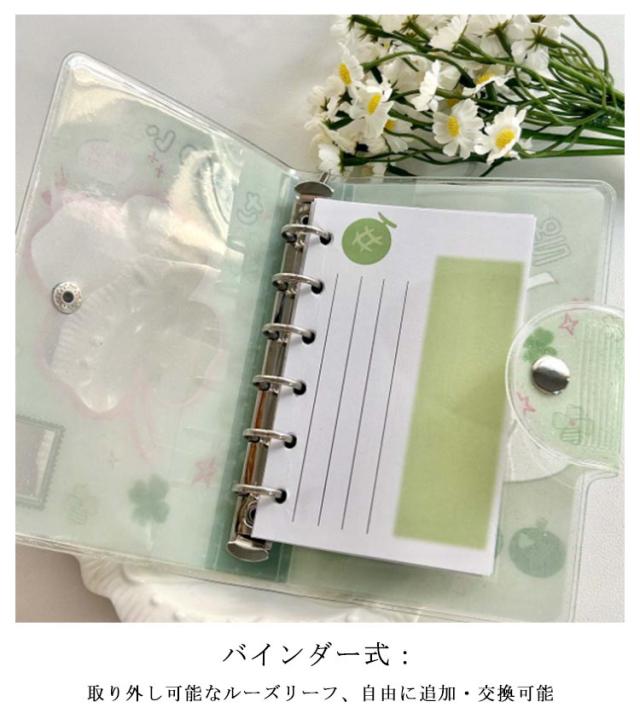 | 帳 バインダー セット内容:カバー+アクリルチャーム+40枚リフィル+ステッカー6枚 バインダー式:取り外し可能なルーズリーフ、自由に追加・交換可能 携帯便利:A7サイズでカバンに入れて持ち歩きやすい 多用途:日記、手帳、メモ帳、ステッカーコレクションに最適 | |