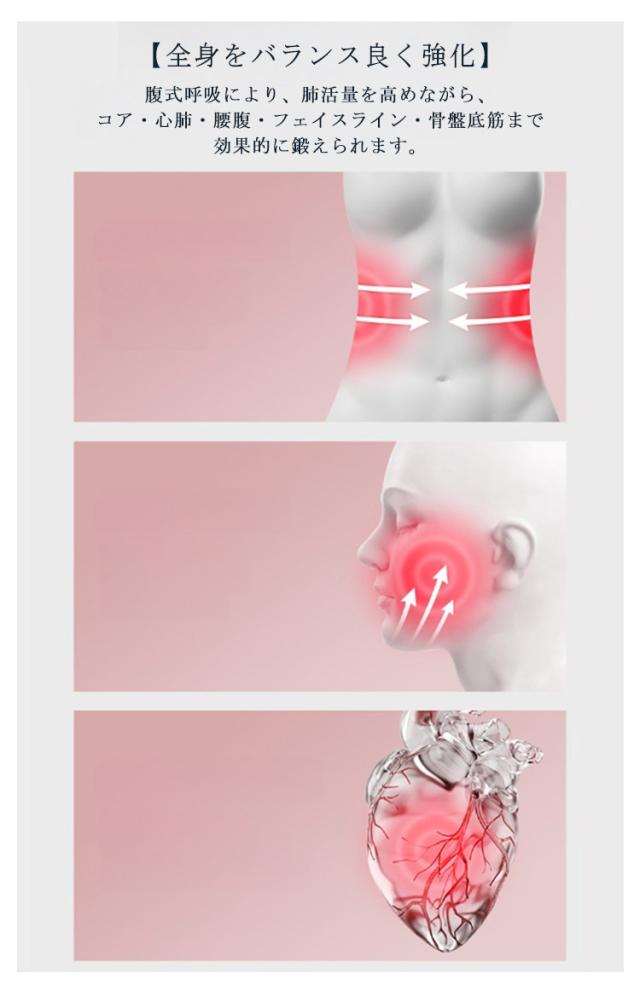 | カウンター付き呼吸ダンベル 肺活量アップ コア・フェイスライン・腹筋 男女兼用 【5段階の空気圧調整】0.2kg×5のウェイトを組み合わせて負荷を自由に調整可能。初心者から上級者まで自分に合った強度でトレーニングできます。 【全身をバランス良く強化】腹式呼吸により、肺活量を高めながら、コア・心肺・腰腹・フェイスライン・骨盤底筋まで効果的に鍛えられます。 【コンパクト・持ち運び便利】小型で軽量のため、収納に困らず、室内・オフィス・旅行先でも気軽にエクササイズ可能。 【男女兼用・幅広い年齢層に対応】男性・女性を問わず、また年齢を重ねた方の呼吸トレーニングにもおすすめ。家族みんなで使用できます。 | |