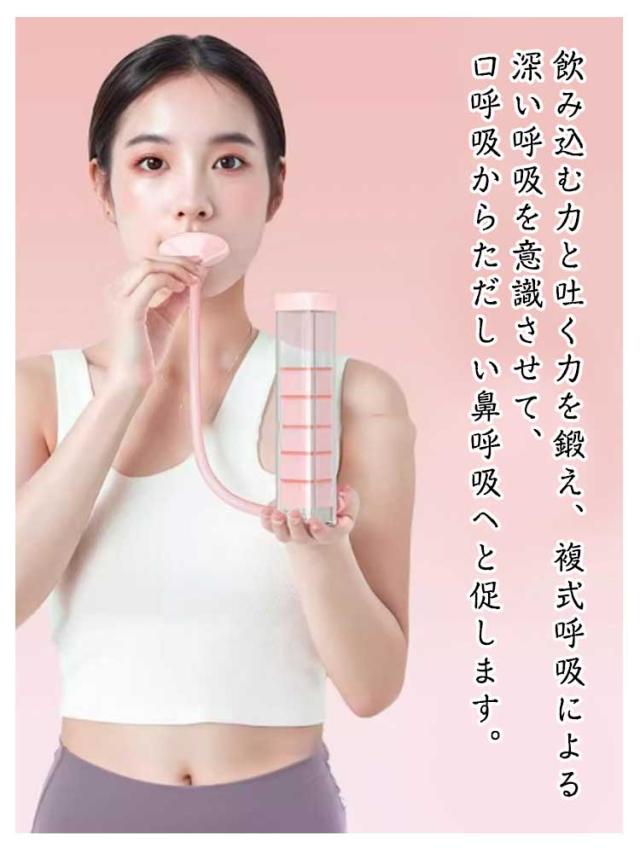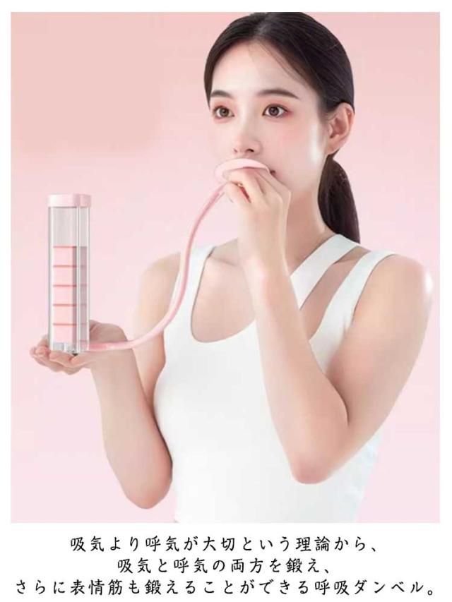 | 呼吸を通して、腹筋・心肺・顔筋・骨盤底筋など幅広い部位を効率的にトレーニング! 吸気より呼気が大切という理論から、吸気と呼気の両方を鍛え、さらに表情筋も鍛えることができる呼吸ダンベル。 飲み込む力と吐く力を鍛え、複式呼吸による深い呼吸を意識させて、口呼吸からただしい鼻呼吸へと促します。 重りを増やしたり減らしたりして調整できるため、初心者でも重りを少なくして肺活量を鍛えています。 運動中の呼吸を快適にするためのトレーニングとして、また、カラオケや発声のためのトレーニングにもおすすめです。 コンパクトで軽量なボディで、持ち運びが簡単です。自宅、オフィス、旅行先など、あらゆるシーンで気軽に呼吸トレーニングを始められます。 | |