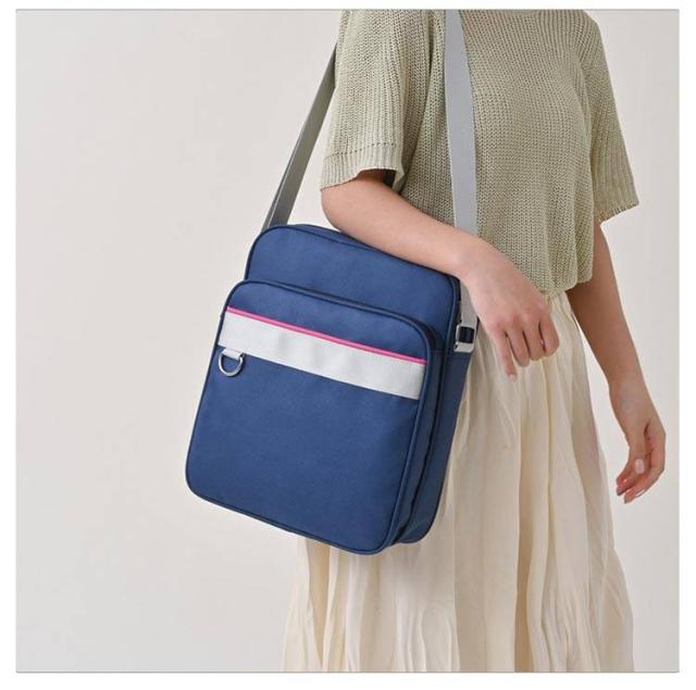 | 【ショルダースクールバッグ 7色 大人可愛い】 軽い・丈夫・収納力抜群のスクールバッグ。 中学生・高校生に人気のショルダー型を自分好みにアレンジして、トレンドをアピールしよう! A4サイズがしっかりと収納できる使い勝手の良いサイズ感が特徴。 メインポケットには、教科書・ノート・タブレット・クリアファイル・折りたたみ傘などをたっぷりと収納。 内ポケットやフロント収納を活用し、スマートフォンやメイク道具、財布などバッグの中で見失いがちな細かいものも綺麗に整頓できます。 大容量の荷物でも、取り出したいものがすぐに見つかるのでストレスフリーに。 どんな制服にも合わせやすく、アレンジでオリジナリティの出しやすいシンプルなデザインを採用しました。 フロント部分のDリングにはお好きなキーホルダーをつけるも良し、パスケースをつけて便利に活用するも良し。 長さ調節可能のショルダーベルトは、肩掛け・斜めがけどちらのタイプとしても使用OK! 両手が空くので移動時にも安全かつ便利です。 通学用のメインバッグとしてはもちろん、コンパクトで使いやすいので、通塾用のサブバッグとしての使用も◎ 縦型で学校の通学に使う学校鞄としてA4サイズが入る軽量なカバンです。 コーディネートしやすいネイビーを中心とした豊富な7点のバリエーションから、自分にぴったりのスクールバッグをお選びいただけます。 友達との色違いやおそろいにもおすすめです。 | |