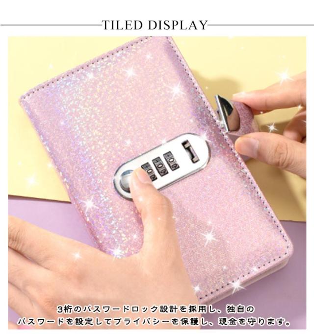 貯金封筒 貯金箱 手帳型バインダー 通貨オーガナイザー お札 ダイヤルロック付き 封筒貯金 貯金ファイル 6色展開 キラキラ キラキラ PUレザー 記念紙幣保管 現金管理 現金詰めバインダー 折らない 札 お金仕分け 貯金ファイル