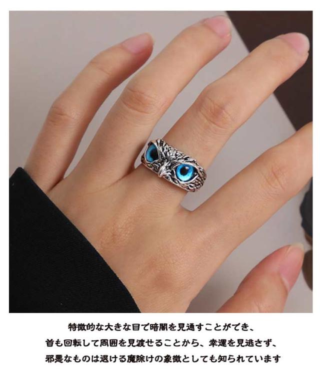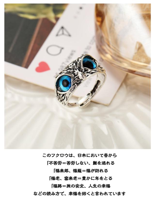 鳥 厄除け 梟 恋愛運 リング 青い目 4個セット バード 指輪 魔除け お守り アクセサリー 開運 4個セット 開運厄除 祈願成就 風水 パワースポット 猛禽類 金運 財産運 出世運 スタイル 幸運の守護 高級感