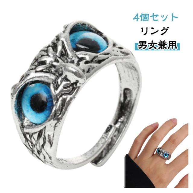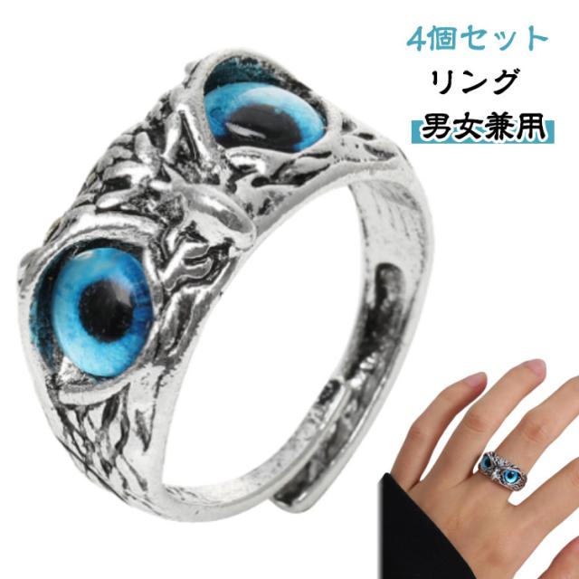 フクロウ 青い目 梟 指輪 金運 アクセサリー 猛禽類 バード 厄除け お守り 開運厄除 風水 魔除け スタイル 開運 祈願成就 4個セット パワースポット 4個セット 鳥 財産運 出世運 恋愛運 幸運の守護 高級感