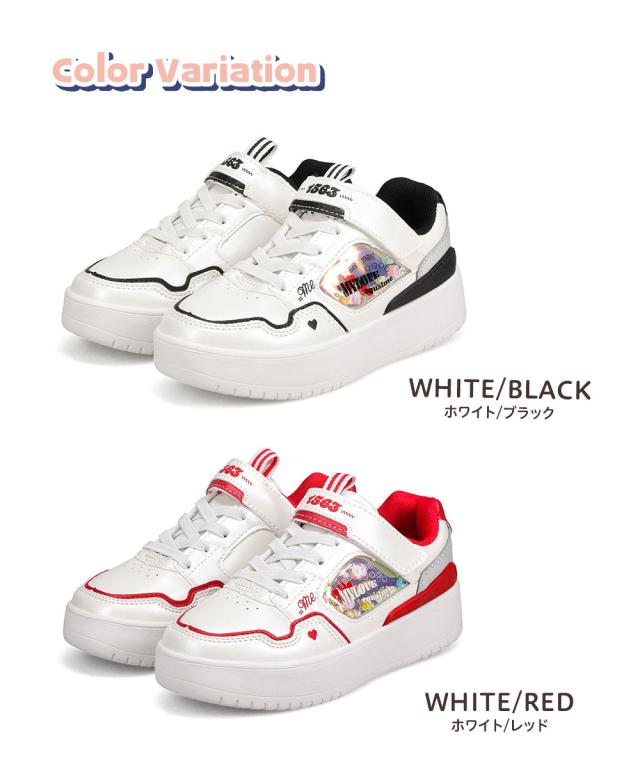 イコールミー スニーカー キッズ 女の子 厚底 ローカット 軽量 軽い ゴム紐 面ファスナー おしゃれ かわいい キラキラ ジュニア ガールズ 小学生 通学 子供靴 運動靴 厚底シューズ キッズスニーカー キッズシューズ 靴 シューズ 白 ホワイト 黒 ブラック レッド =me 3790