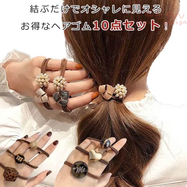 ポニーテール くすみカラー セット】ヘアアクセサリー セット ハート 10点 ヘアゴム ビーズ 送料無料 ヘアゴム 英字 大人っぽい 母の日 シンプル レディース 韓国 春 夏 秋オフィス オシャレ 【ヘアゴム
