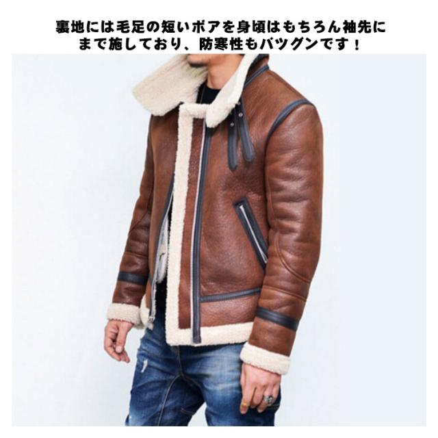 裏起毛 革 リューグーレザーズ メンズ ムートンジャケット ライダース バイカージャケット 皮ジャン 本皮ジャンパー 革ジャン ブルゾン 防寒 防風 カジュアル 毛皮 ミリタリー ボア ファー レザージャケット