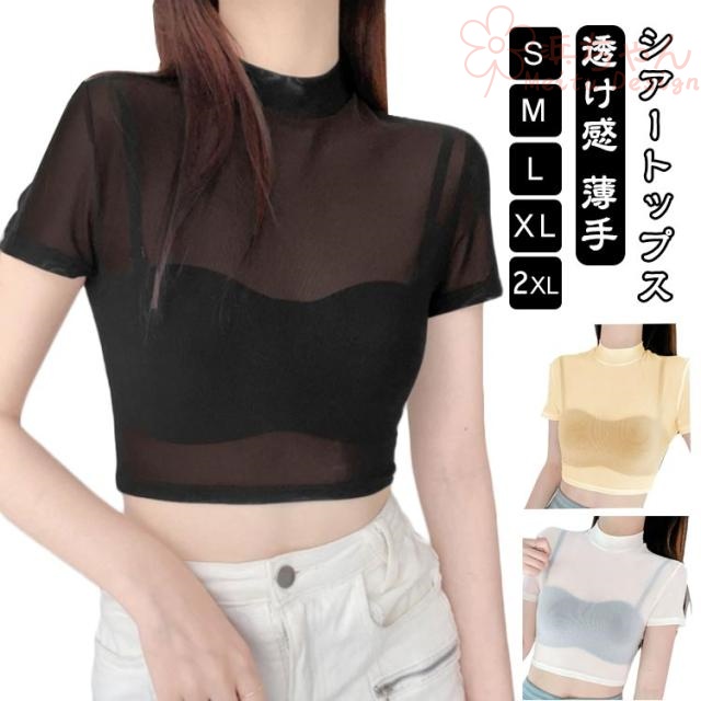 シアートップス チュールトップス 夏 シアー チュール tシャツ トップス カットソー シアーカットソー 透け感 シアートップス半袖 ハイネック 涼しい 薄手 重ね シアーtシャツ レディース シアートップス シースルー 夏トップス 春夏 送料無料