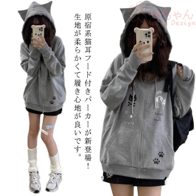 猫耳パーカーレディース 猫耳 フード付き 地雷系 アウター 長袖 サブカル系 トップス トレーナー パーカー ジップパーカー スウェット 猫耳パーカーレディース カジュアル 原宿風 ストリート系 おしゃれ 可愛い プリント 学生