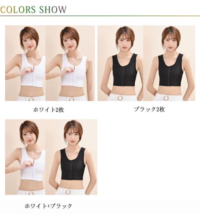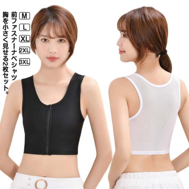 【2枚セット】和装ブラ 前ファスナー 胸つぶし ブラジャー ナベシャツ さらし レディース 胸を小さく見せる ブラ ブラトップ 補正下着 苦しくない 夏用 和装ブラジャー 着痩せ コスプレ タンクトップ 大きいサイズ 【2枚セット】