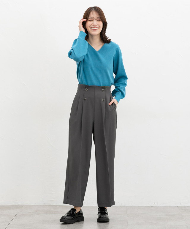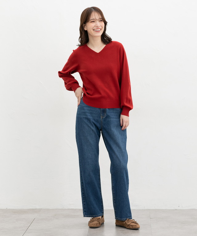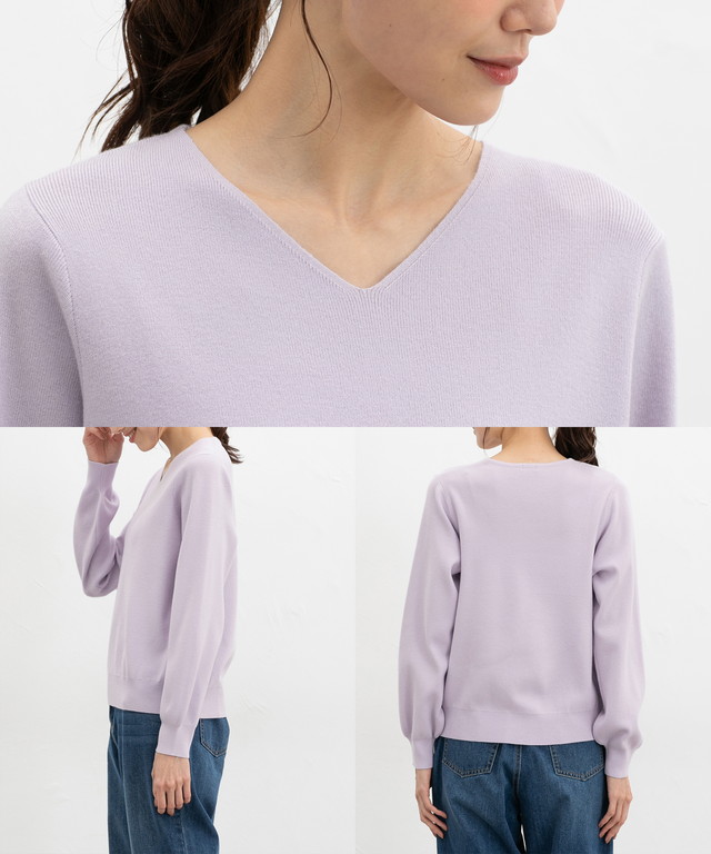 すっきりきれいな印象のVネックデザイン。