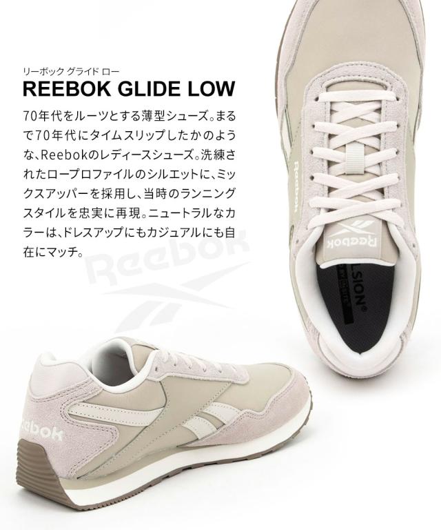 リーボック スニーカー レディース ローカット 靴 シューズ ジュニア 通学 学生 中学生 高校生 大学生 おしゃれ レトロ スエード 本革 グレー ピンク グライド ロー Reebok GLIDE LOW