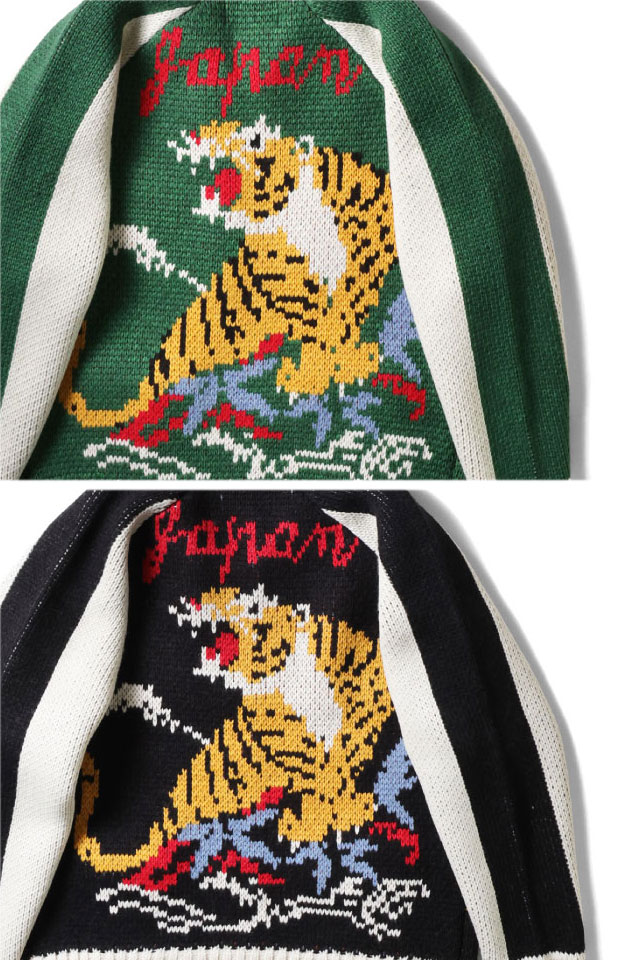 デフォルメされた虎柄が可愛らしい仕上がりで、アメカジニットへの仲間入りを可能にしてくれます。