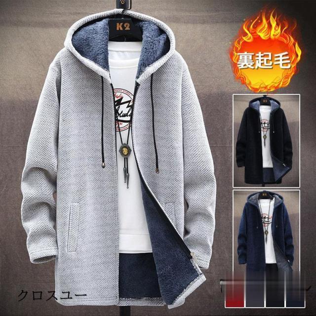 【期間限定】パーカー メンズ 長袖パーカー 裏起毛 フード付き カジュアル 防寒 ロング コート ス 暖かい 秋服 ニット 羽織 体型カバー ジップアップ
