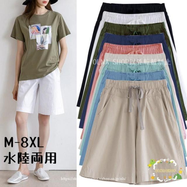 M-8XL ハーフパンツ レディース スポーツ ショートパンツ カーゴパンツ 夏用体型カバー キュロット カーキ 膝丈パンツ 薄手 短パン長め