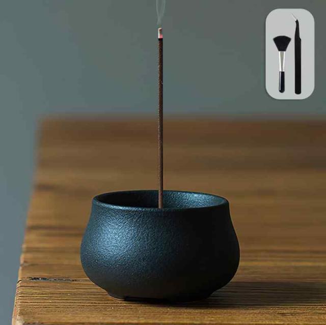 GOKEI お香立て 線香立て 線香 お香 立て 香炉 和風 陶器製 ミニ おしゃれ お線香立て 香立て 線香たて アロマ せんこうたて仏壇用 おこうたて インセンスホルダー 線香炉 お香立 ホルダー ミニ仏壇 シンプル お香置き 心を落ち着かせてくれる 癒しグッズ ヨガ 瞑想 リラックス (ブラック, Medium)