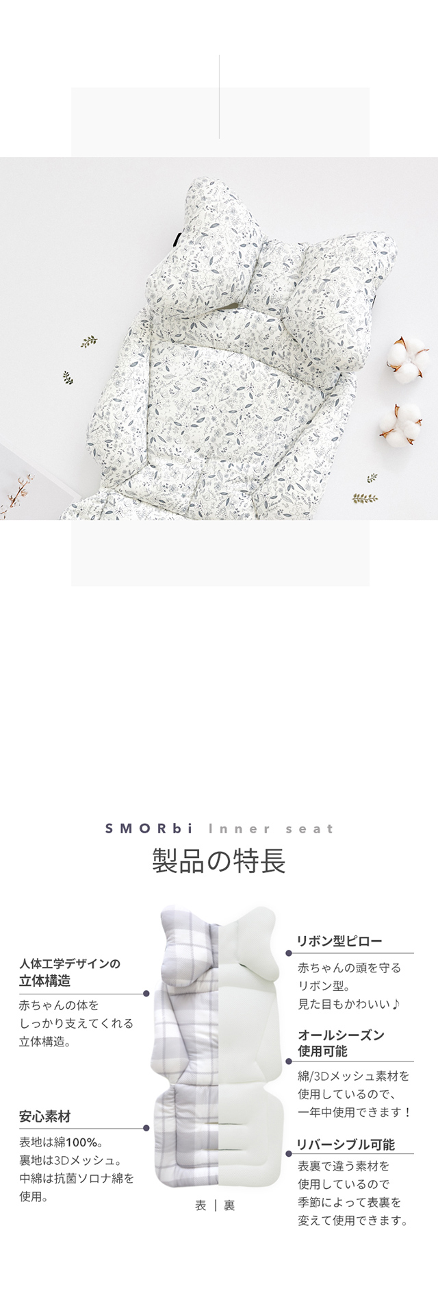99.9%抗菌 スモルビ オールシーズン用 ベビーカーシート クッション おしゃれ かわいい リボン型ピロー 新生児 チャイルドシート