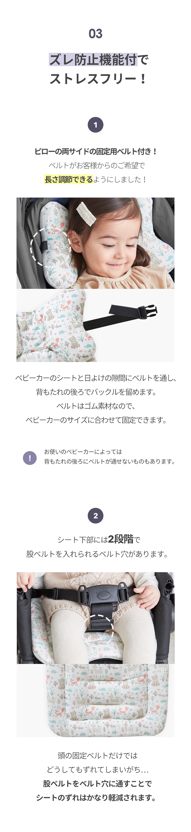 よくベビーカーに座ったまま横にずれてしまっている赤ちゃんを見かけますが、これは赤ちゃんの体をシートが支えられてない証拠 これでは赤ちゃんは不快ですし、体への悪影響も心配です。