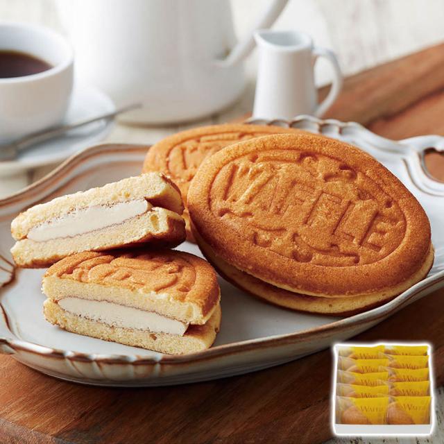 ふわふわワッフル生地で美味しいカスタードクリームを挟み込みました。