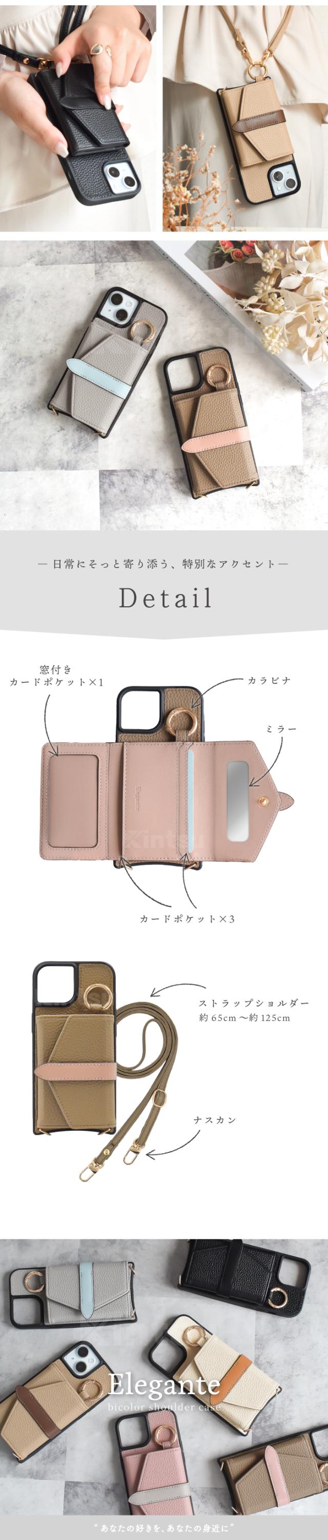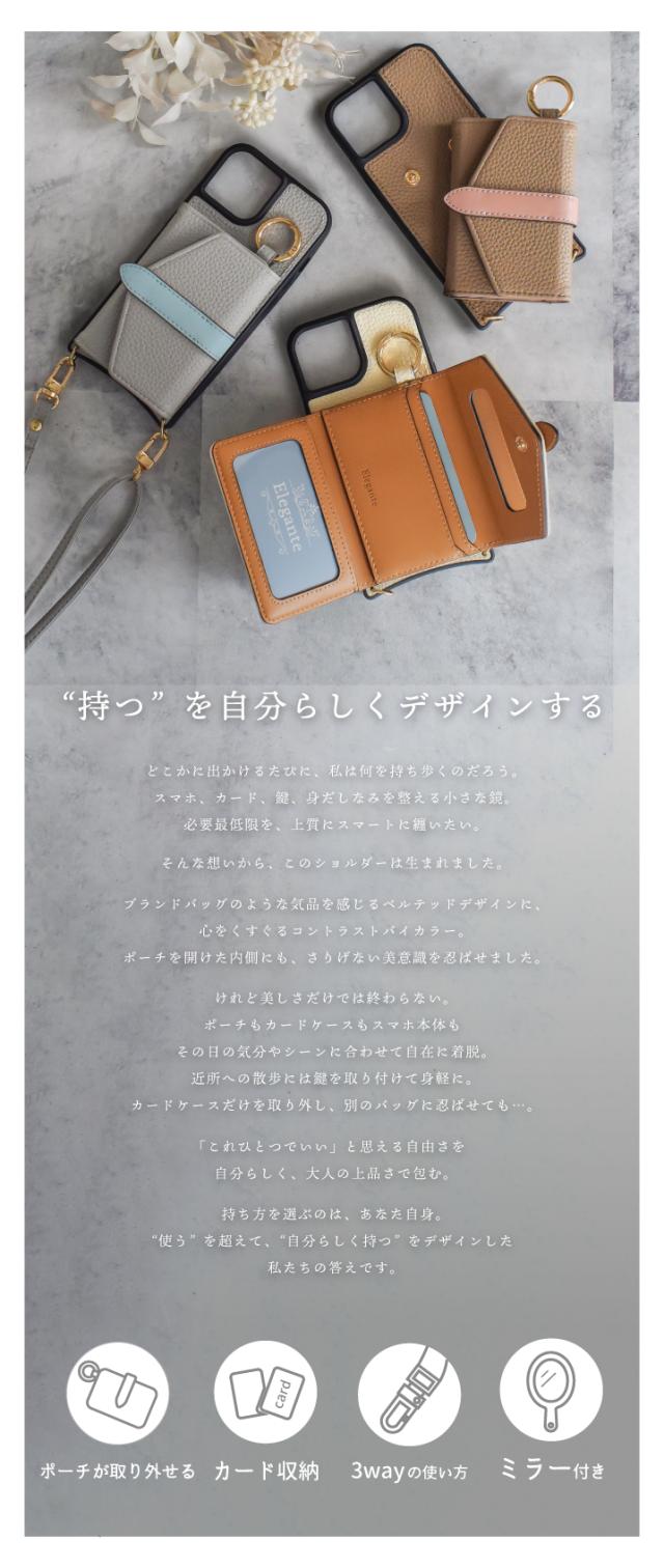 公式 Elegante iPhone 17 ケース iPhone16e 16 ケース ショルダー ベルテッド バイカラー iphone15 14 13 12 pro max ケース se3ケース アイフォン15 14 スマホショルダー ミラー付