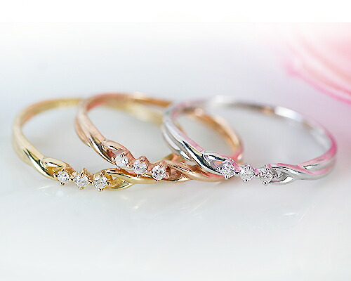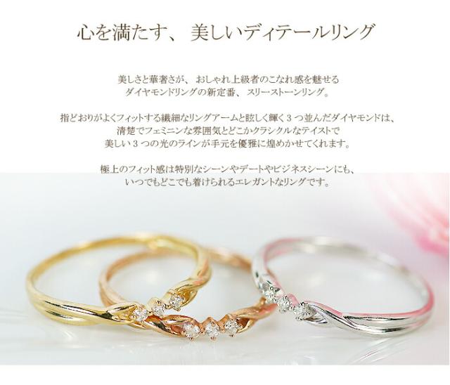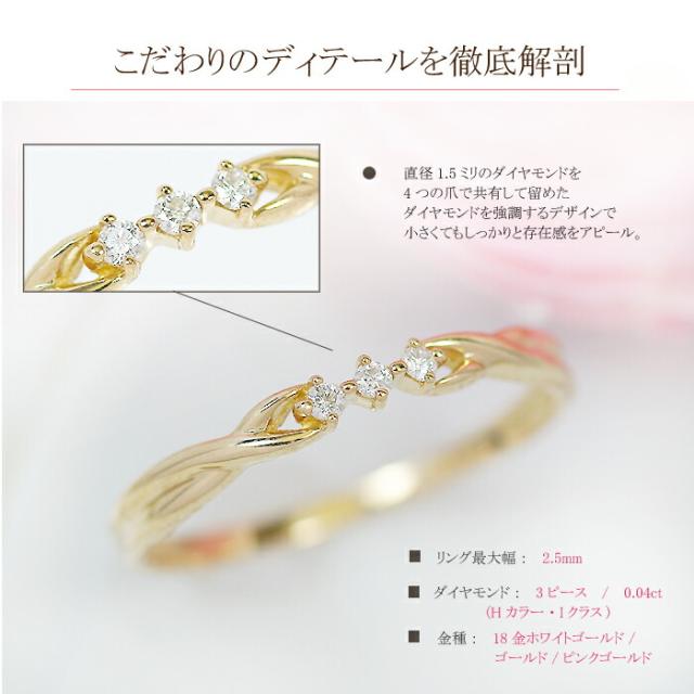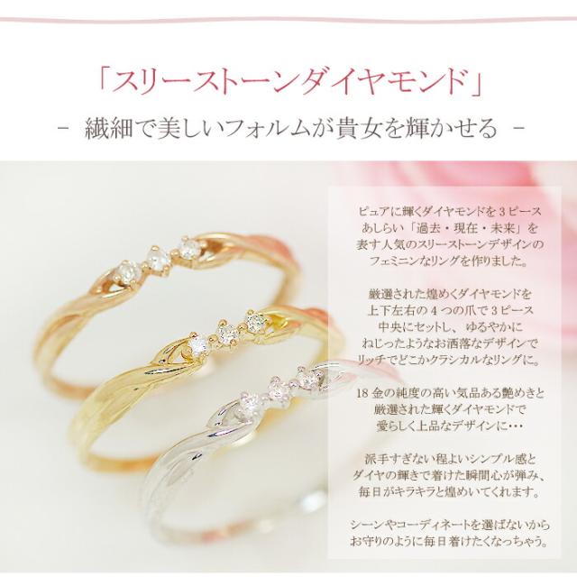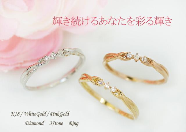 リング ダイヤモンド 0.04ct 18金 ホワイトゴールド ピンクゴールド K18 WG PG スリーストーン 3ストーン 3石 レディース アクセサリー ジュエリー ギフト 185774 ダイヤ