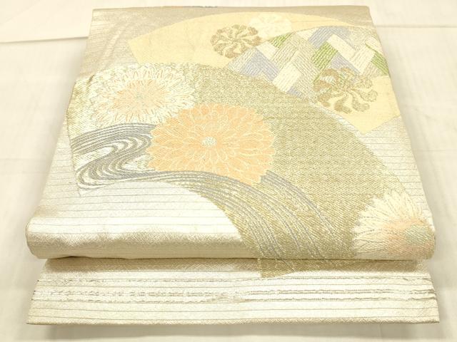平和屋着物*夏物 アンティーク 大正ロマン 丸帯 地紙流水花文 金銀糸 正絹 逸品 DAAW4511cm