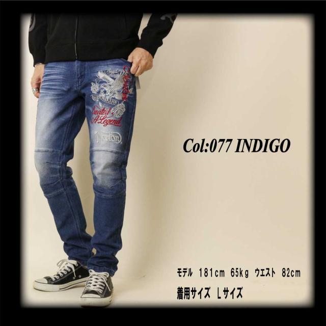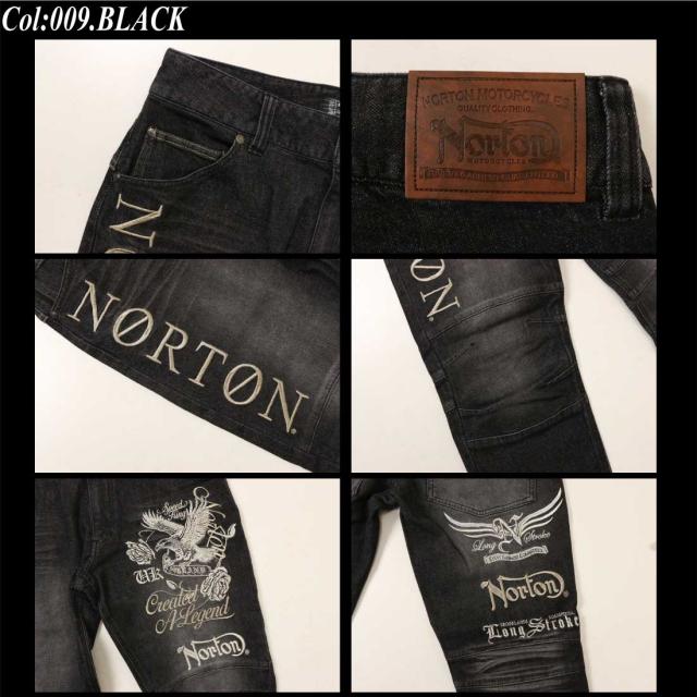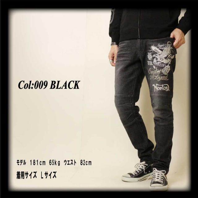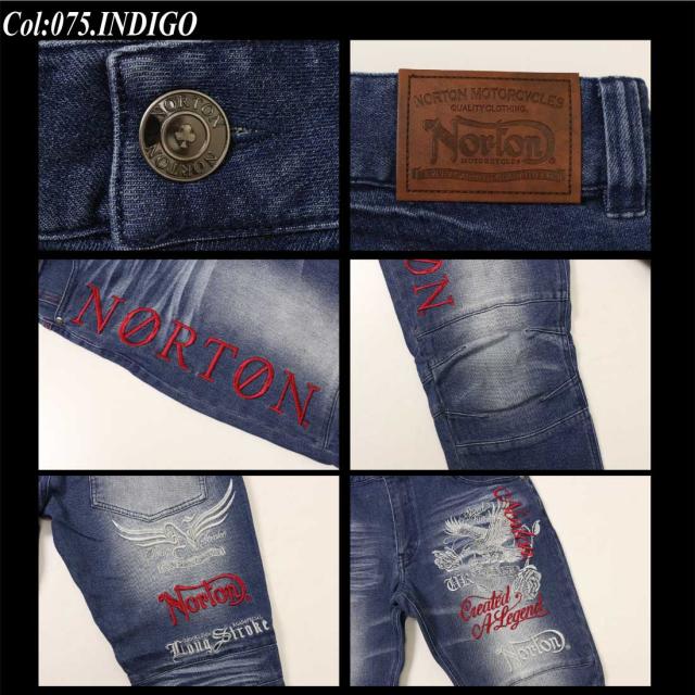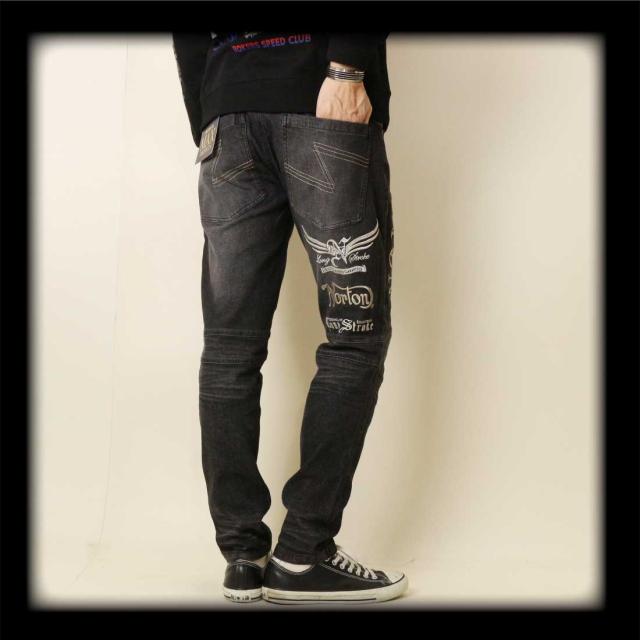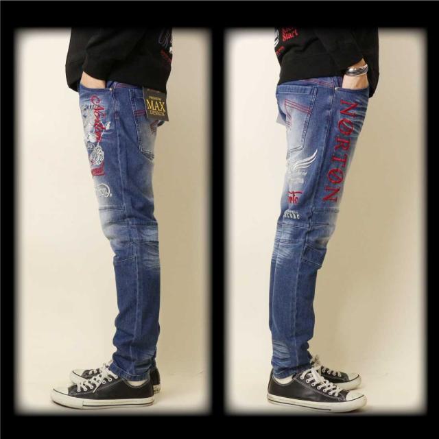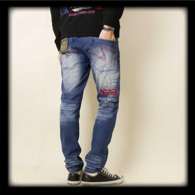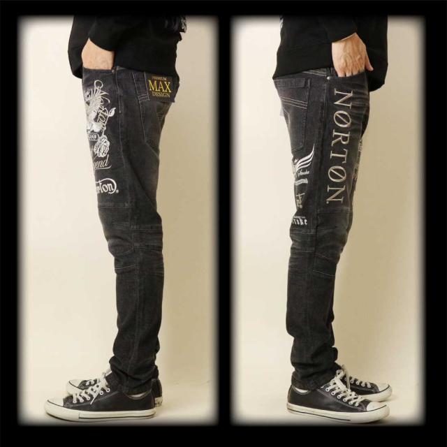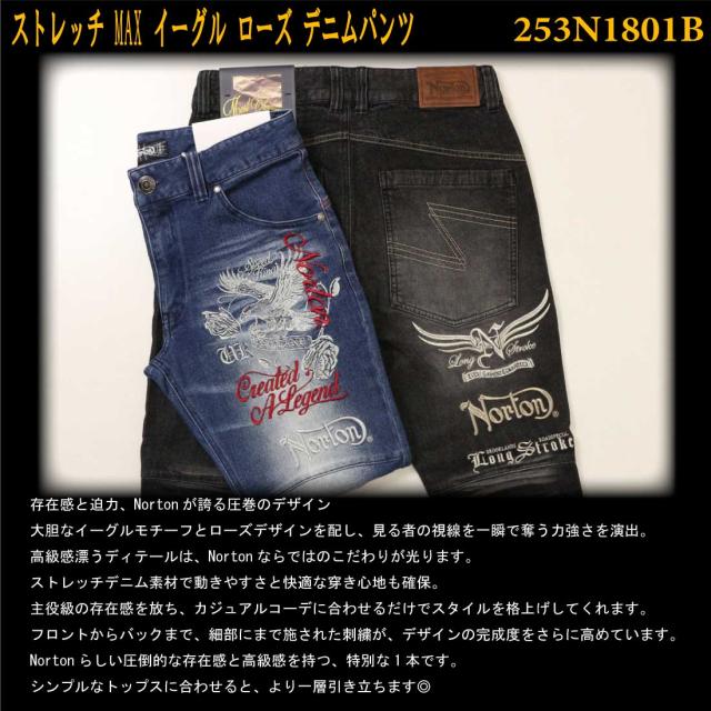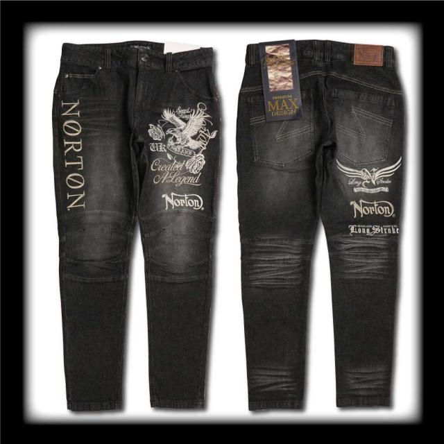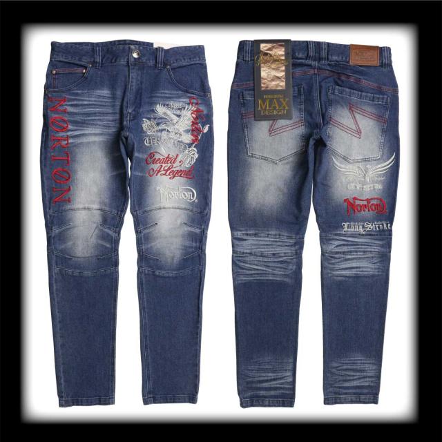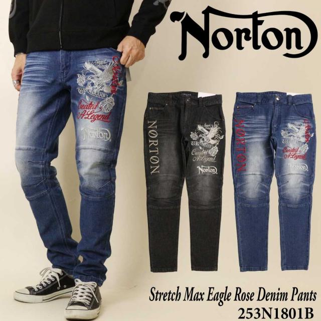 Norton ノートン 服 ジーンズ デニム パンツ 253N1801B ストレッチ MAX イーグル ローズ デニムパンツ ロゴ 刺繍 メンズ アメカジ バイカー