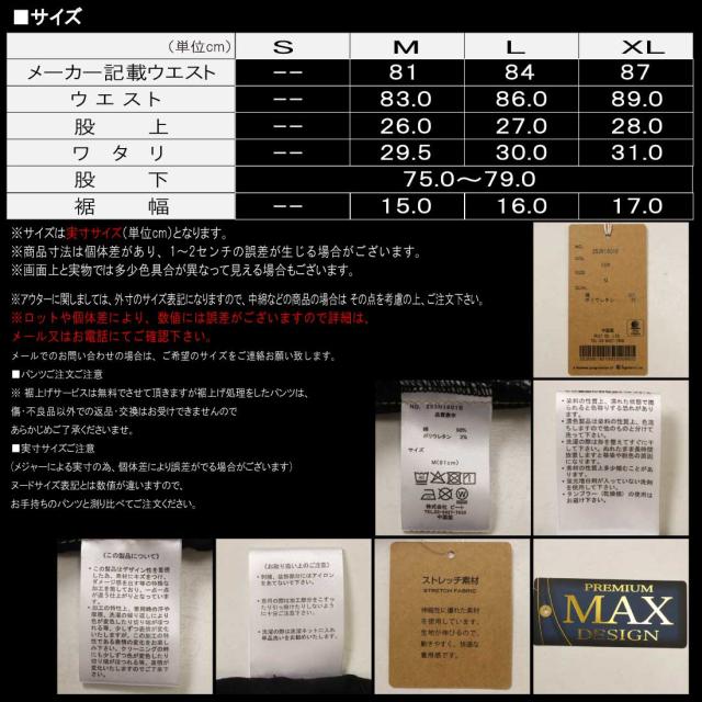 (ヌードサイズ表記とは数値が違いますので、お手持ちのパンツと測り比べてご注文ください。)