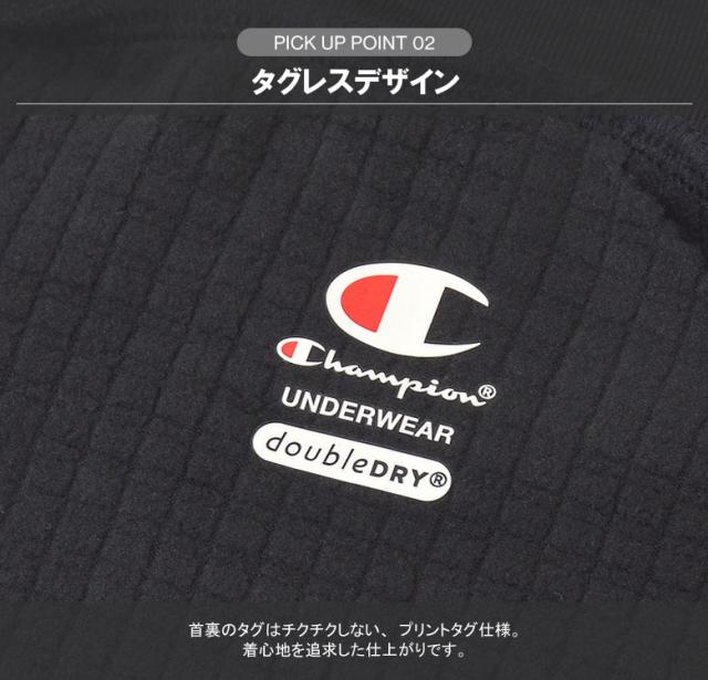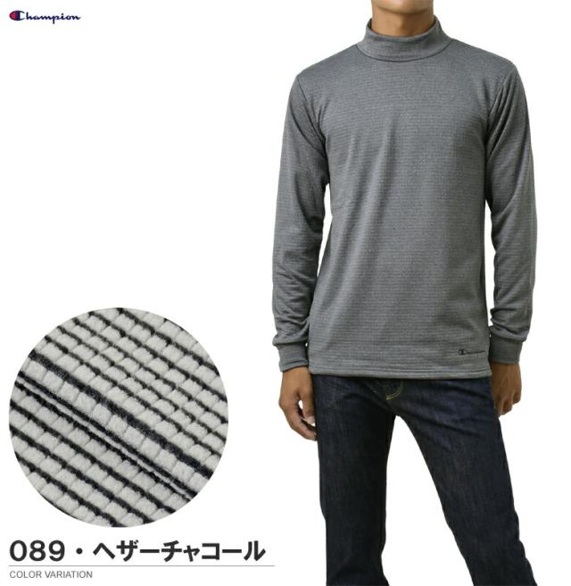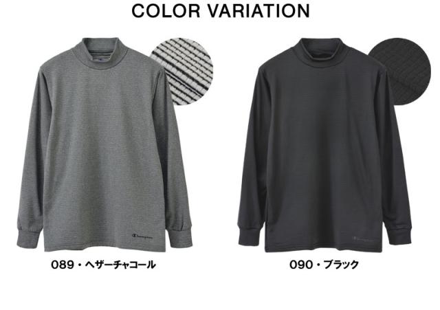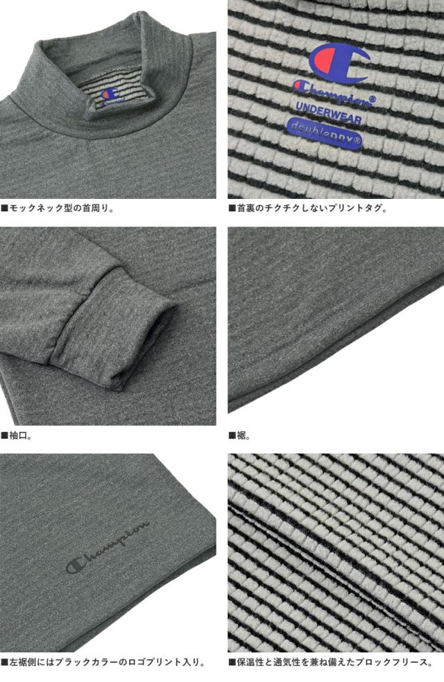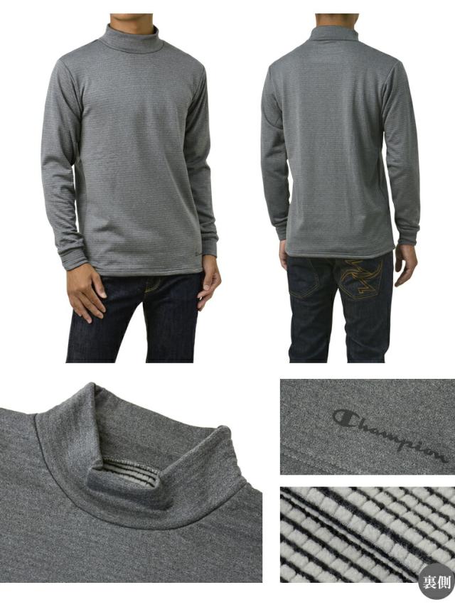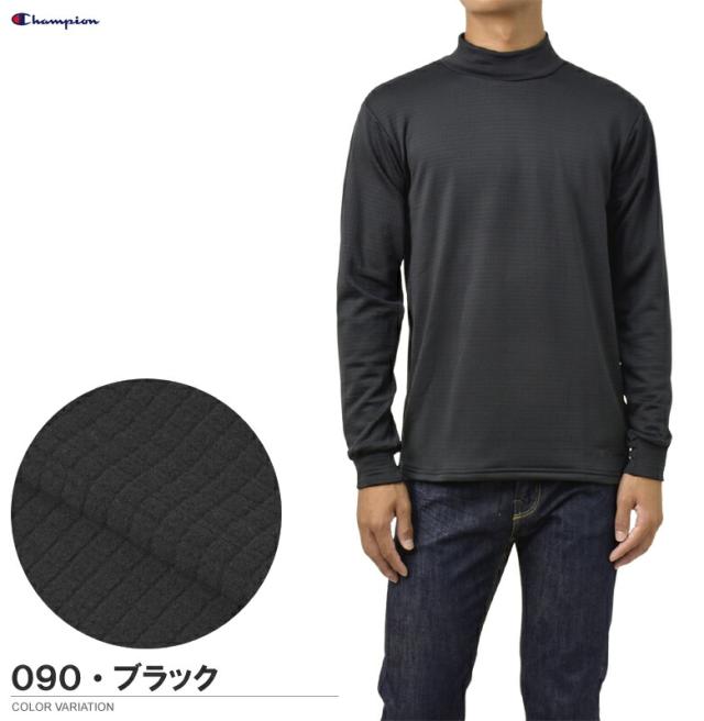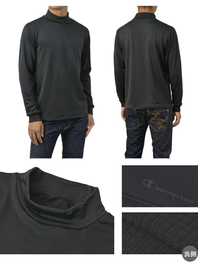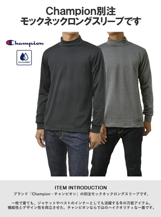 吸汗速乾 Tシャツ 長袖 メンズ カットソー インナー ロングスリーブ ハイネック ダブルドライ Champion チャンピオン ブロックフリース 裏起毛 モックネック 保温 シンプル 別注 ブランド 正規品 CM4HC206S【R1W】【パケ1】【A】