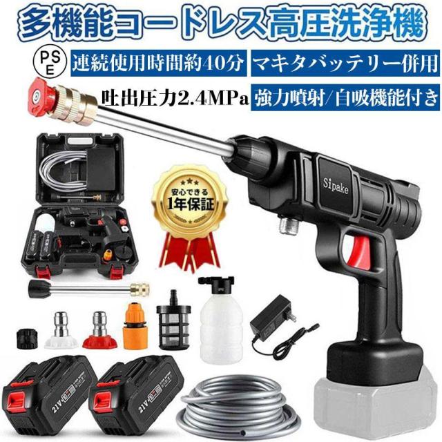 高圧洗浄機 コードレス 充電式 軽量 洗車機 強力噴射 2.4MPa マキタ 18vバッテリー適用 コンパクト 長時間使用 外壁掃除 大掃除 車掃除 家庭用