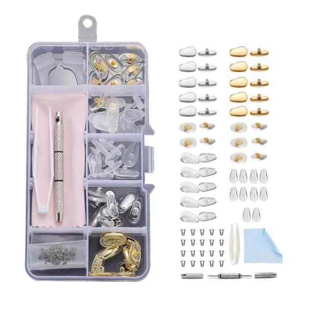 メガネ鼻パッド 眼鏡 鼻パッド メガネ シリコン 柔らかい 25ペア 5種類 ノーズパッド ずれ落ち防止 メガネ用 鼻あて 修理キット エアクッション ハード 金属 交換セット パッド跡軽減 ドライバー ネジ クロス ピンセット ケース 付き (クリア)