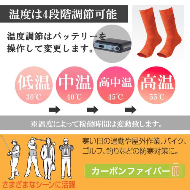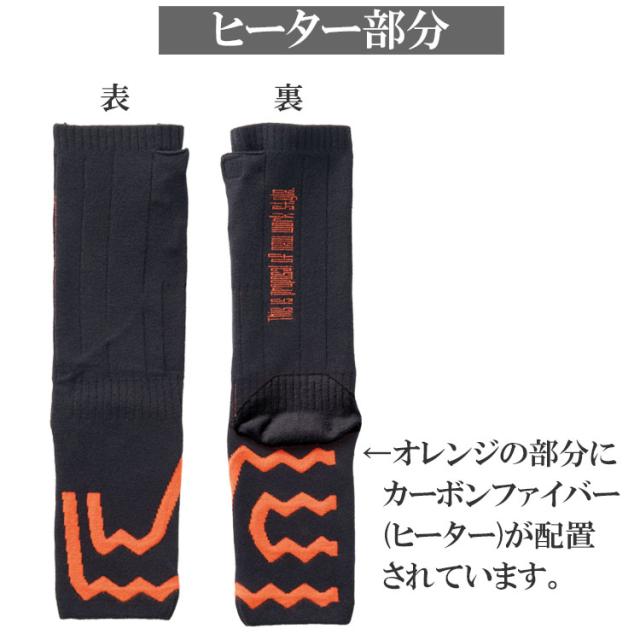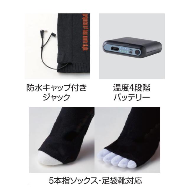 配置された発熱カーボンファイバーが足を温め、寒い現場でも快適に過ごせる。