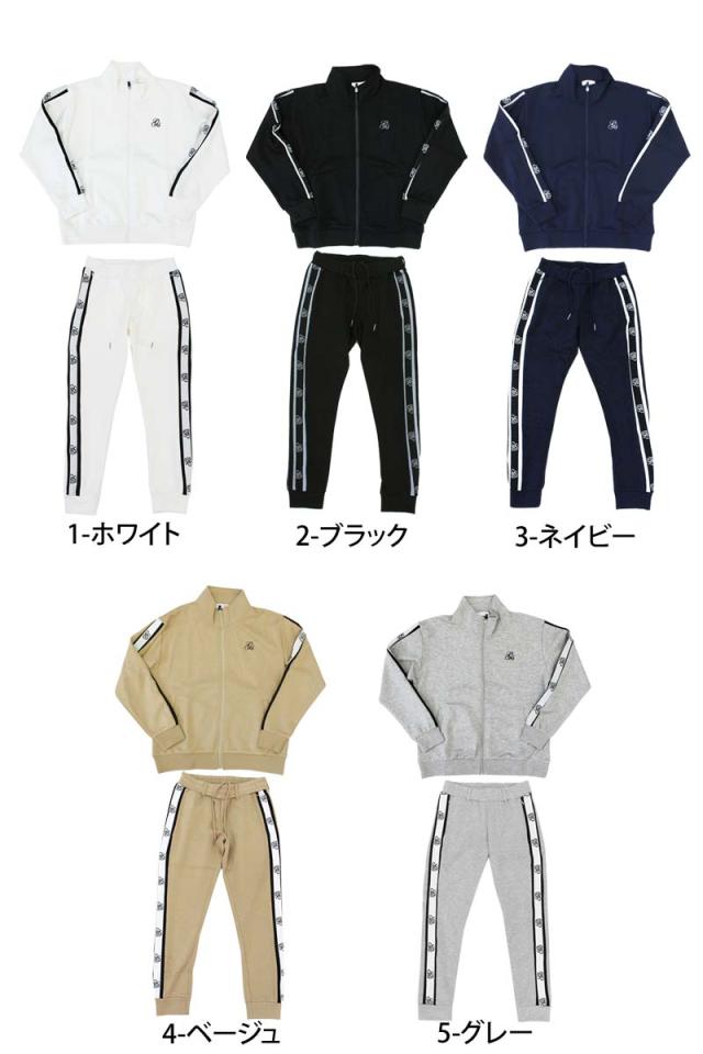 ゴルフジャケットトレーナーとゴルフパンツの上下セットアップ。