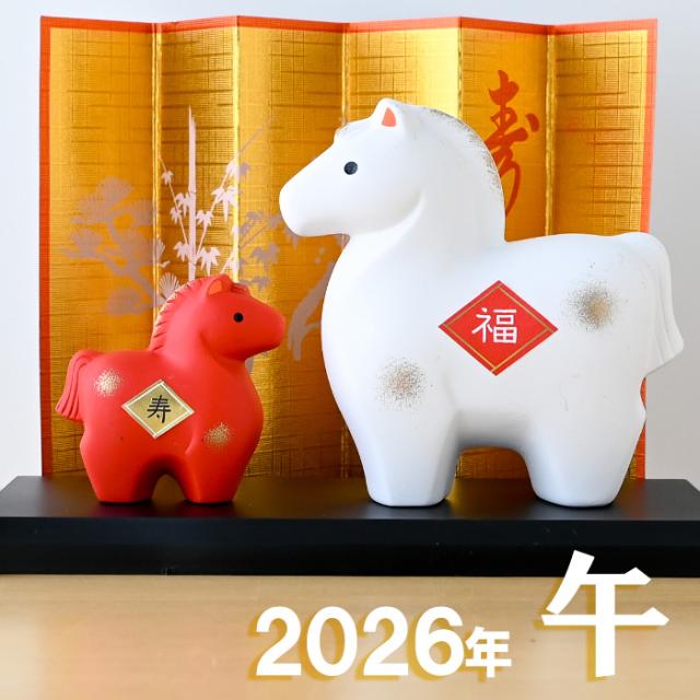 干支 置物 薬師窯 錦彩招福午 (紅白・大) 30 干支の置物 馬 午年 午 陶器 うま ウマ 2026年 干支置物 薬師 窯 の 置物 飾り 2026 迎春 正月 縁起 粗品 景品 伝統工芸・陶器の和遊感