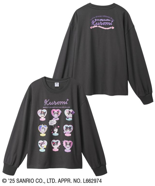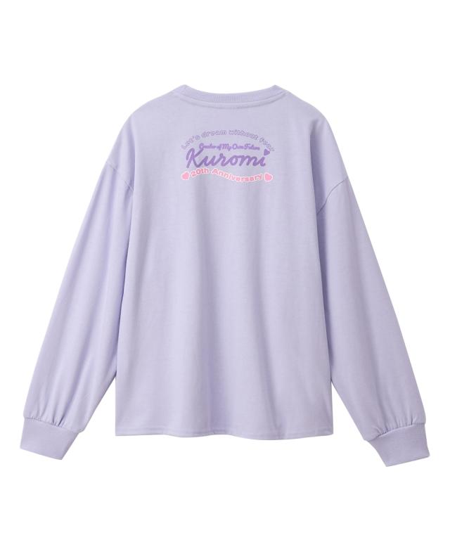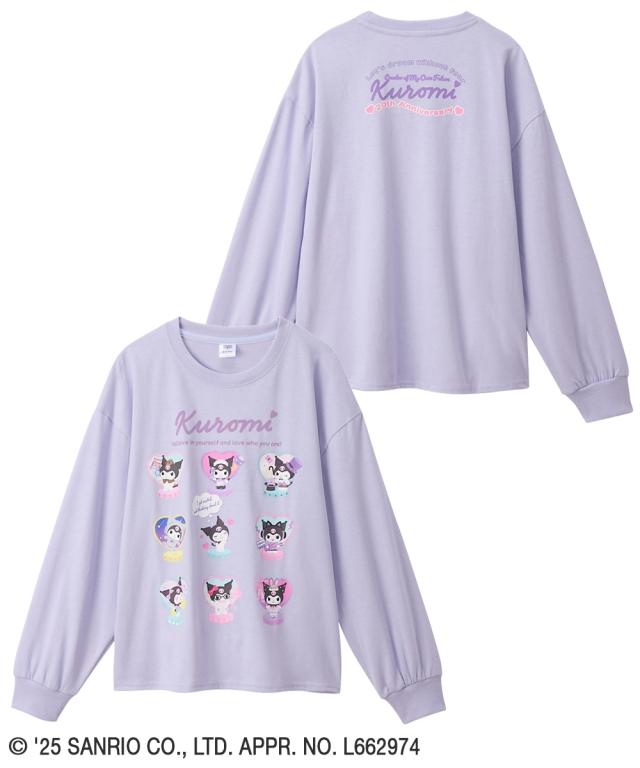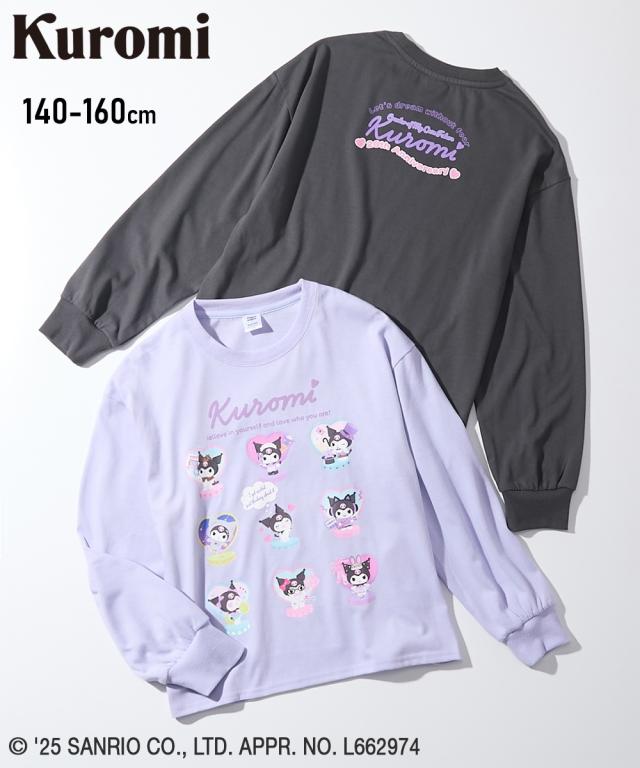 大人気キャラクター「クロミ」のキュートな長袖Tシャツが登場!パープルとチャコールの2色展開で、どちらも普段使いしやすいカラーです。クロミの様々な表情が楽しめるデザインで、お子様のお気に入りの一枚になること間違いなし!自分らしく輝くクロミのように、このTシャツを着て毎日を楽しく過ごそう!■デザイン・フロントには、様々な表情のクロミがプリントされており、見ているだけで楽しくなるデザインです。・「Kuromi」のロゴはフロッキー加工が施されており、立体感と温かみのある仕上がりになっています。・ バックプリントには「Let's dream without fear」のメッセージと「20th Anniversary」の文字が入り、特別な一枚を演出します。■素材・天竺素材の長袖なので、季節を問わず大活躍!■おすすめのスタイリング・デニムパンツやスウェットパンツと合わせて、元気いっぱいのカジュアルスタイルに。スニーカーとキャップをプラスすれば、さらにアクティブな印象に。・プリーツスカートやフレアスカートと合わせて、可愛らしいガーリースタイルに。バレエシューズやショートブーツを合わせれば、お出かけにもぴったり。・オーバーオールやジャンパースカートのインナーとして着用し、クロ