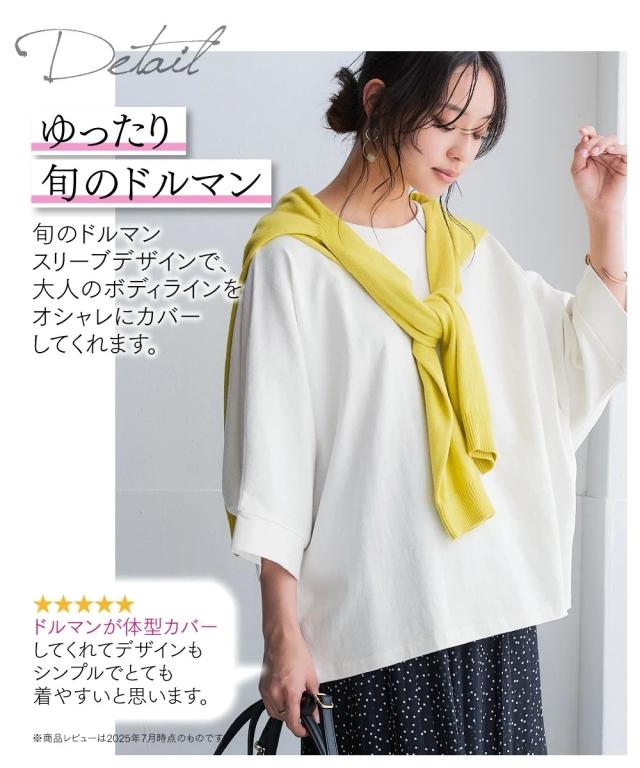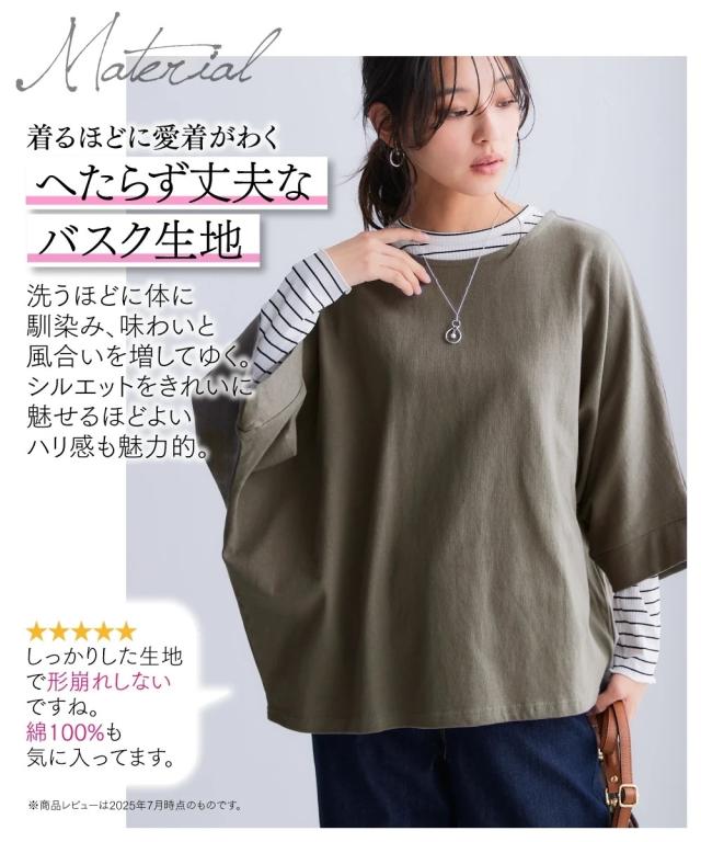 Tシャツ カットソー レディース 綿100% バスクドルマン トップス 7分袖 UVカット 秋 | 8L/10L | ニッセン nissen