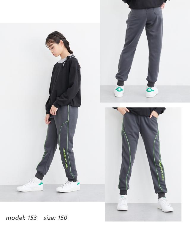 動きやすさとデザイン性を兼ね備えた、キッズのためのジョガーパンツが登場!通学、公園遊び、お家でのリラックスタイムまで、どんなシーンにもマッチする万能アイテムです。140-160cmの豊富なサイズ展開で、成長期のお子様にも長くご愛用いただけます。■デザイン・サイドやポケット周りに施された鮮やかなパイピングが、シンプルなデザインに遊び心をプラス。コーディネートのアクセントになります。・膝部分やサイドに入った切替が、脚長効果と動きやすさを両立。アクティブな動きを妨げません。・「KEEP IT UP」のロゴプリントが、カジュアルながらも都会的な印象を与えます。・裾がリブになっているので、足元がもたつかず、動きやすさ抜群。スニーカーとの相性も抜群です。■素材・動きやすいカットソー素材で活発なお子様にも ■おすすめのスタイリング・オーバーサイズのTシャツとキャップを合わせて、ストリート感あふれるカジュアルスタイルに。・パーカーやスウェットと合わせて、スポーツシーンにも対応できるアクティブなコーディネートに。・ゆったりとしたトップスと合わせて、お家でのリラックスタイムにもぴったりの快適なスタイルに。