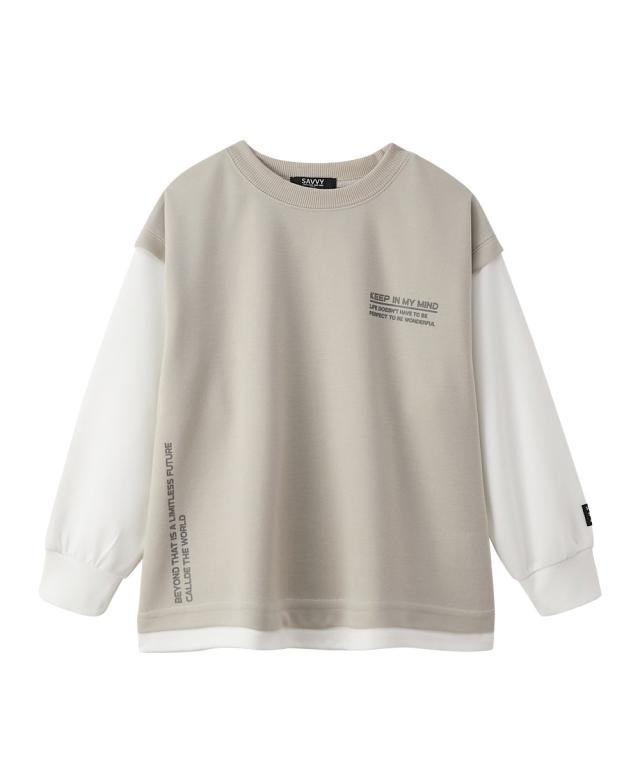 このトレーナーは、重ね着風のデザインで、これ一枚でおしゃれなレイヤードスタイルが完成します。■デザイン・ベスト部分は無地でシンプルながら、袖部分のホワイトとの切り替えがアクセントになっています。・胸元には「KEEP IN MY MIND LIFE DOESN'T HAVE TO BE PERFECT TO BE WONDERFUL」というメッセージがプリントされており、ポジティブな印象を与えます。・脇部分には「BEYOND THAT IS A LIMITLESS FUTURE CALLDE THE WORLD」というメッセージが縦にプリントされており、個性を引き立てます。・サイズ展開は110cmから160cmまでと幅広く、ユニセックスなデザインなので兄弟姉妹でのおソロコーデにもご着用いただけます。■素材・ポンチ素材を使用しており、肌触りが良く、動きやすいのが特徴です。■おすすめのスタイリング・デニムパンツと合わせてカジュアルに。スニーカーとキャップでアクティブな印象に。・チノパンと合わせて少しきれいめに。足元はローファーやブーツで大人っぽく。・ショートパンツとレギンスを合わせて、元気いっぱいのスポーツミックススタイルに。