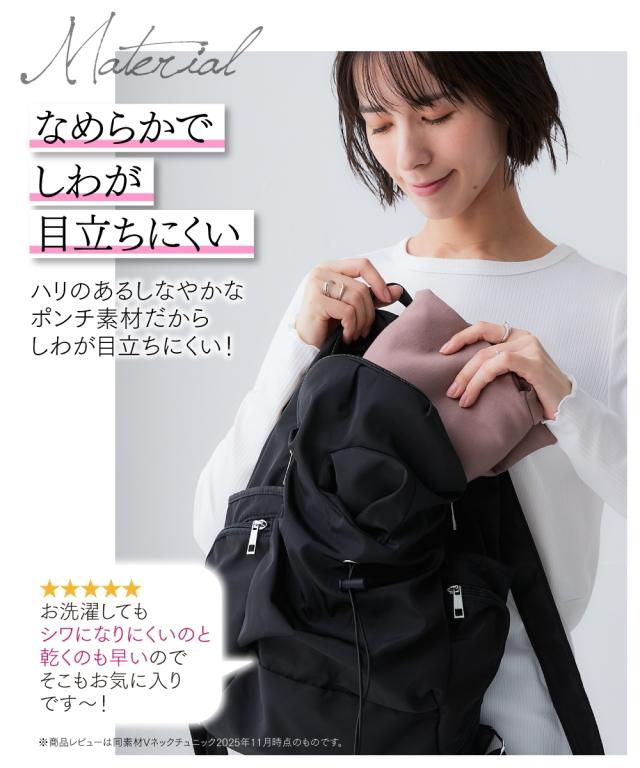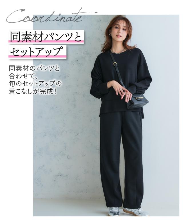 Tシャツ カットソー レディース なめらかポンチ素材 サイドスリット プルオーバー セットアップ 可能 春 秋 冬