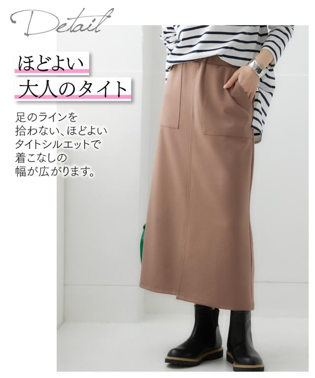 ロングスカート レディース なめらかポンチ素材 前スリットタイト スカート セットアップ 可能 マキシスカート 長め ロンスカ | 8L/10L | ニッセン nissen