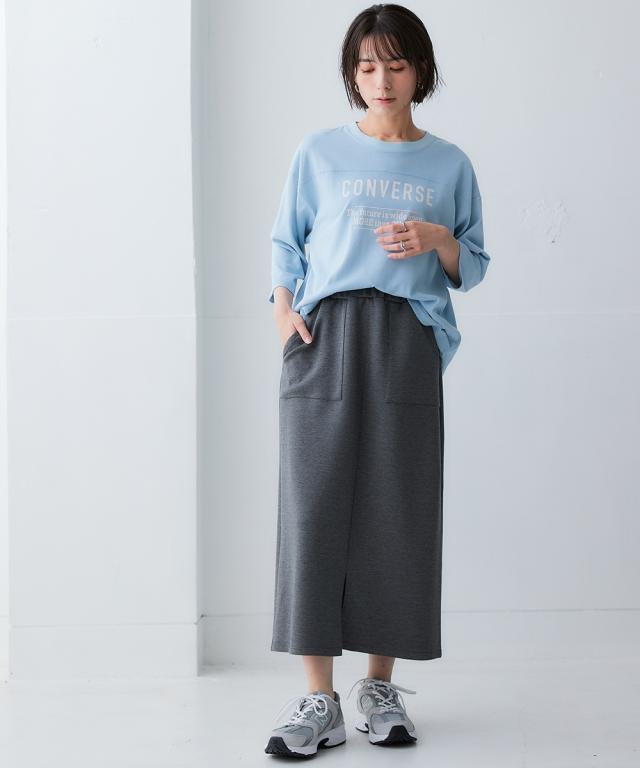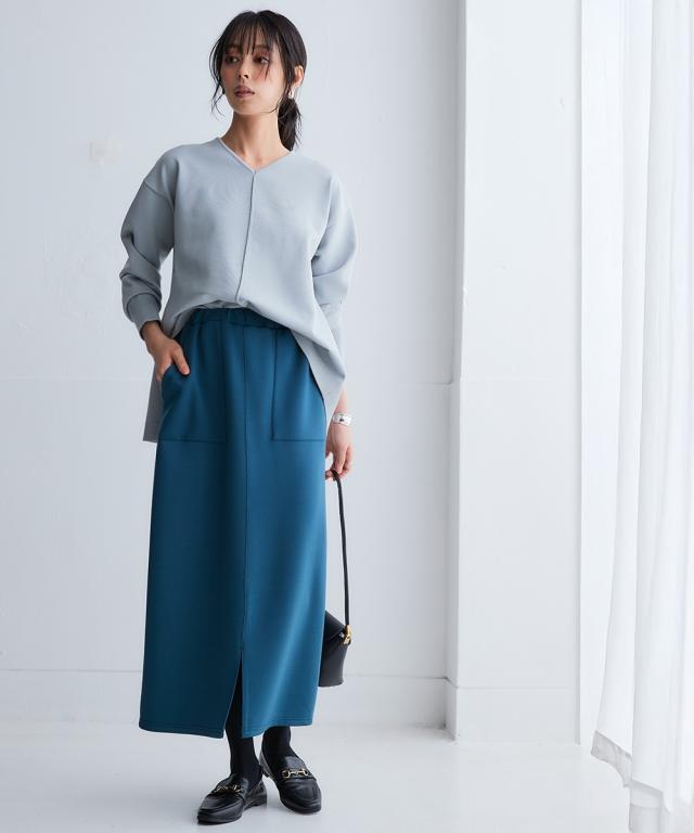 なめらかポンチ素材 前スリットタイトスカート(セットアップ可能)
