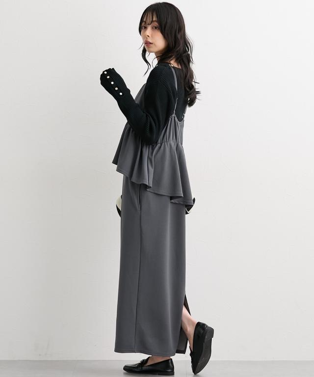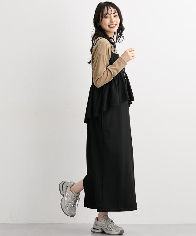 ワンピース ロング マキシ レディース ペプラム キャミソール 秋 ひざ下 | L/LL/3L | ニッセン nissen