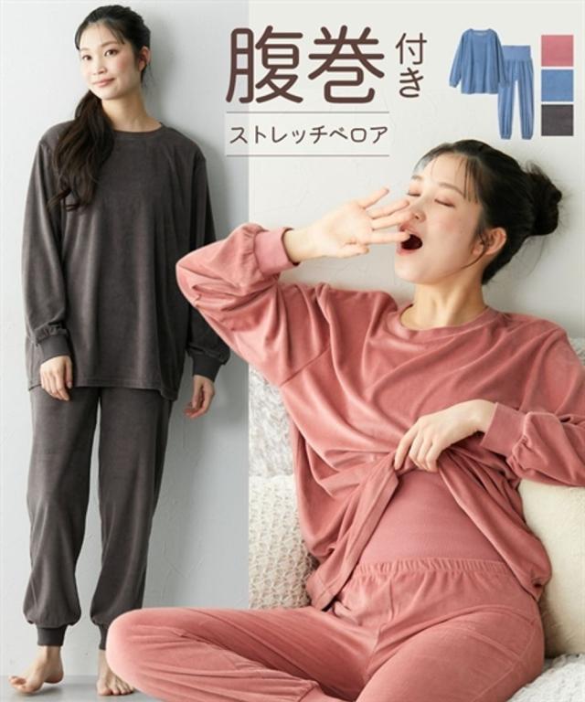 ベロアニット腹巻付きルームウェア上下セット腹巻付きルームウェアでおしゃれに冷え防止!肌ざわりなめらかなベロアニットのルームウェア。ほどよくストレッチが効いているので快適な着心地です。腹巻・袖口・足口のリブは綿95%でお肌にやさしいのも ◇Detail◇なめらかで光沢のあるストレッチベロア。繊細な毛足で程よい厚みがあり、肌寒くなる季節にちょうどいい素材です。【腹巻付き】すっぽりとお腹を包んであたたかい腹巻付き。ストレッチの効いたリブで楽な着心地です。【襟ぐり】首元すっきりとしたクルーネック。【袖口リブ】腕まくりできるので家事の邪魔にならず便利。【ポケット】ボトムにはポケット付きでちょっとしたものを入れるのに便利。【足口リブ】動いてもずり上がりにくい足口リブ仕様。足元の冷え防止にも ◇Size◇自信をもってお届けできる商品だからたくさんの人に着てほしい!Mサイズから6Lサイズまで豊富な7サイズ展開!お好みのサイズをお選びいただけます。