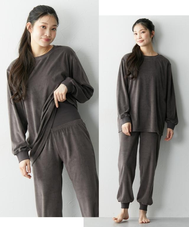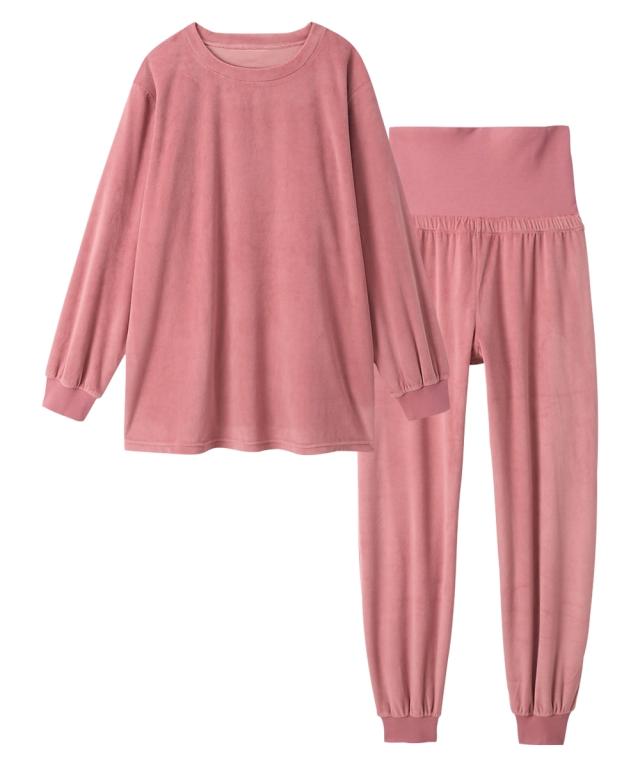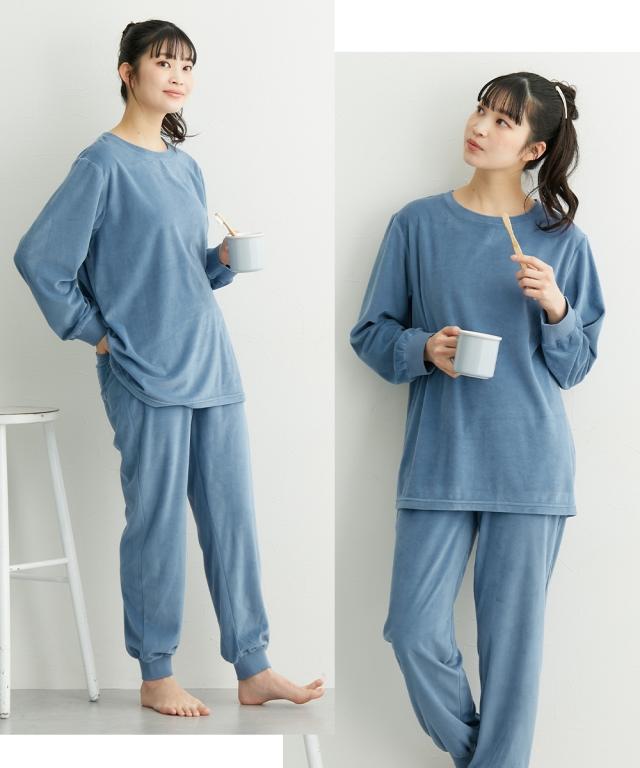 パジャマ 上下セット レディース ベロア ニット 腹巻付き ルームウェア 秋 冬 セットアップ 部屋着 女性 | LL/3L | ニッセン nissen