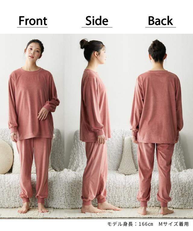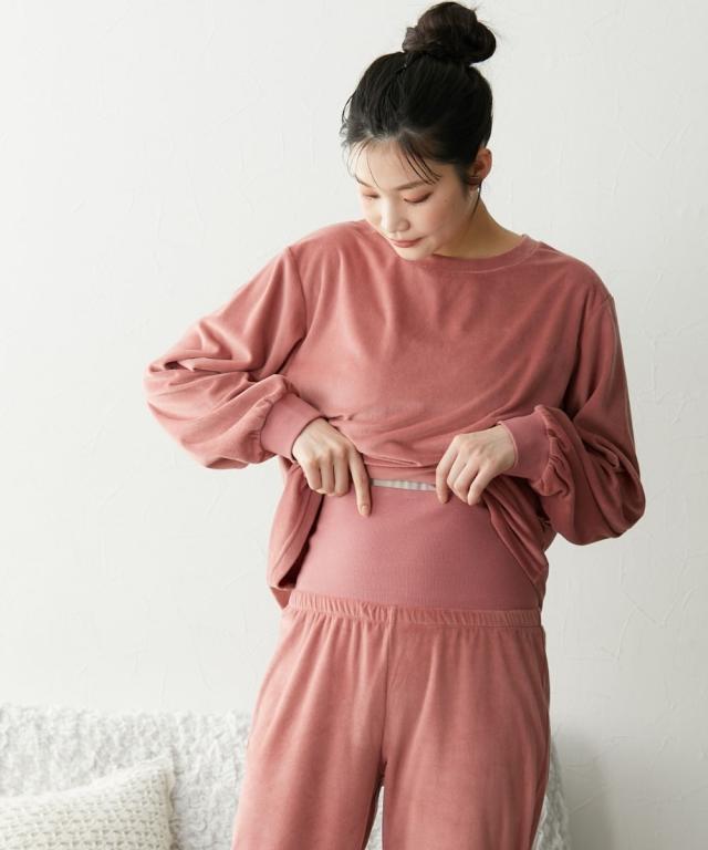ベロアニット腹巻付きルームウェア上下セット腹巻付きルームウェアでおしゃれに冷え防止!肌ざわりなめらかなベロアニットのルームウェア。ほどよくストレッチが効いているので快適な着心地です。腹巻・袖口・足口のリブは綿95%でお肌にやさしいのも ◇Detail◇なめらかで光沢のあるストレッチベロア。繊細な毛足で程よい厚みがあり、肌寒くなる季節にちょうどいい素材です。【腹巻付き】すっぽりとお腹を包んであたたかい腹巻付き。ストレッチの効いたリブで楽な着心地です。【襟ぐり】首元すっきりとしたクルーネック。【袖口リブ】腕まくりできるので家事の邪魔にならず便利。【ポケット】ボトムにはポケット付きでちょっとしたものを入れるのに便利。【足口リブ】動いてもずり上がりにくい足口リブ仕様。足元の冷え防止にも ◇Size◇自信をもってお届けできる商品だからたくさんの人に着てほしい!Mサイズから6Lサイズまで豊富な7サイズ展開!お好みのサイズをお選びいただけます。