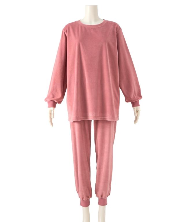 パジャマ 上下セット レディース ベロア ニット 腹巻付き ルームウェア 秋 冬 大きいサイズ セットアップ 部屋着 女性 | 4L/5L/6L | ニッセン nissen