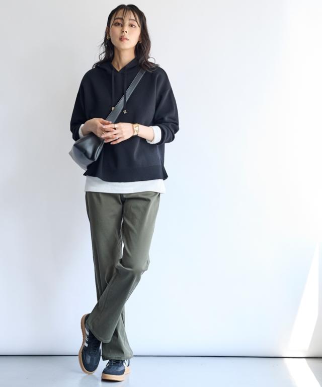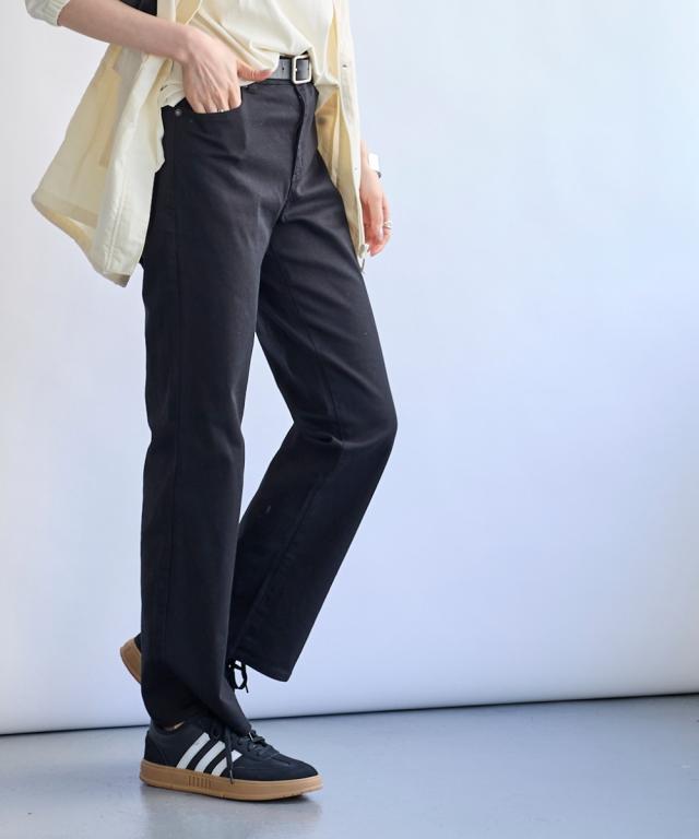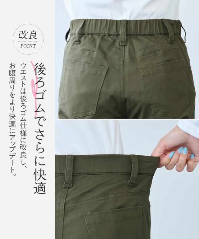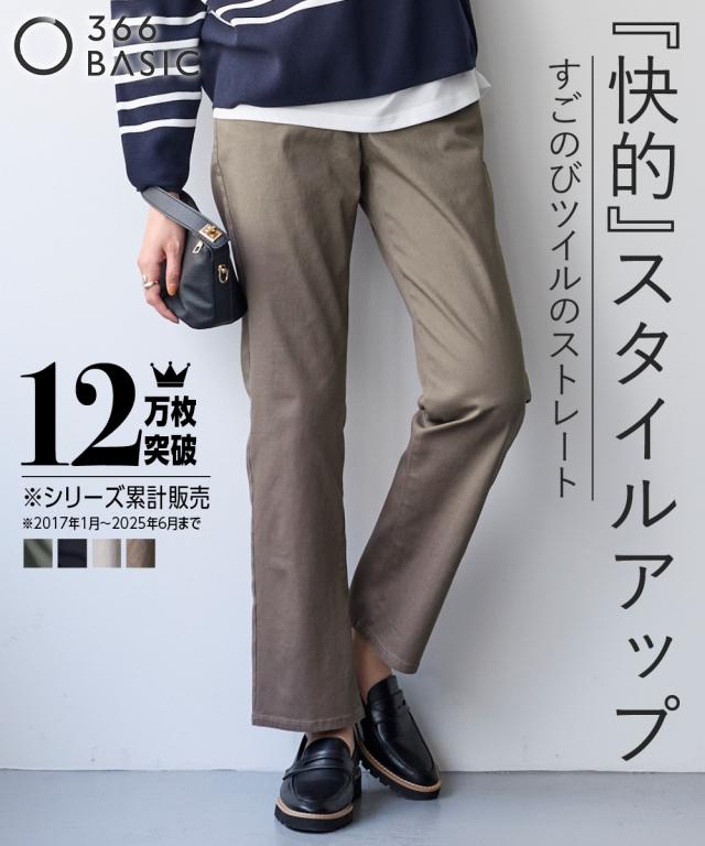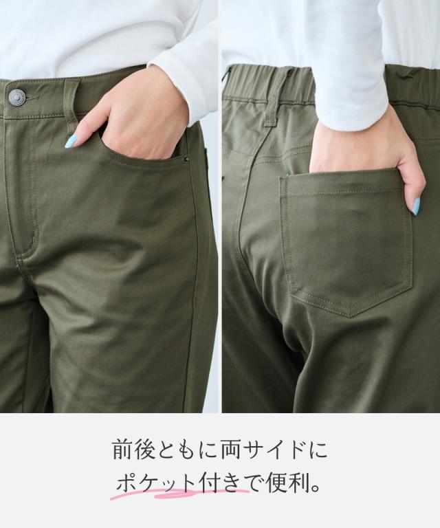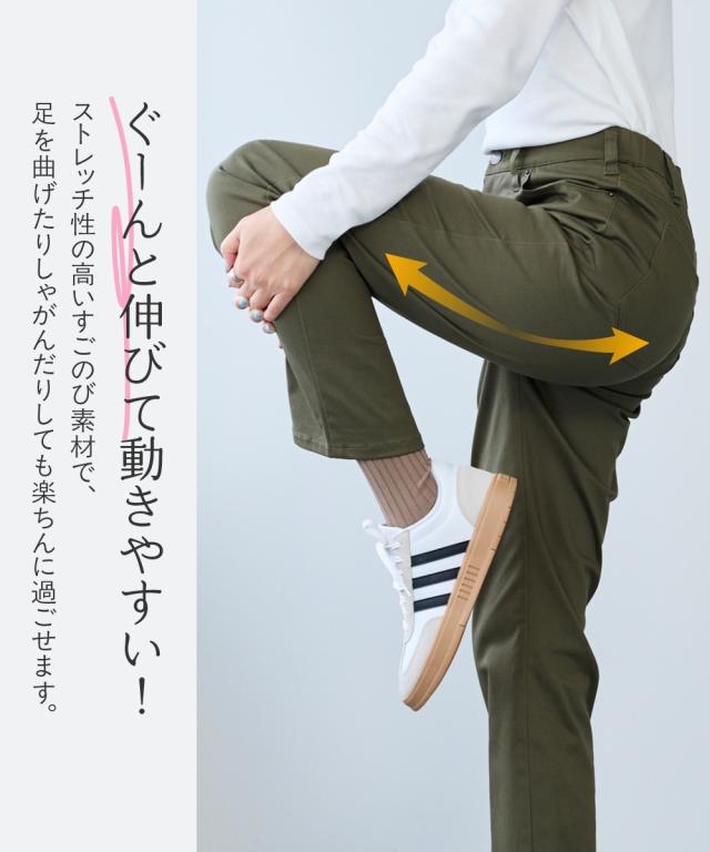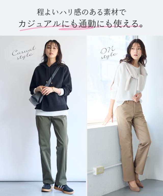 日常使いしたいベーシックなアイテムだからこそ、はき心地の良さで選びたい。ONでもOFFでもオールシーズン使える大人気ボトムを是非一度お楽しみください ■デザイン弊社の強みであるパターンにもこだわりが!!!股下に隙間ができにくい特殊なライン設計だからしっかりはき込めて脚の動きがスムーズです。ウエスト開きの角に丸みがあり、前かがみになってもラクちん。シンプルデザインで、すっきり見えるストレートシルエット。しっかり穿き込めるから脚長に見えるライン設計前後に便利なポケット付き足の可動域が広がり快適な動きやすさへ穿きやすさにこだわりヒップはゆったり設計・太ももはゆるっとゆったり設計■素材ヨコにグンと伸びるストレッチツイル素材で、はき心地がラク☆程よいハリ感の生地で着回しできる優秀パンツ■コーディネイトトップスを選ばず着回し自在