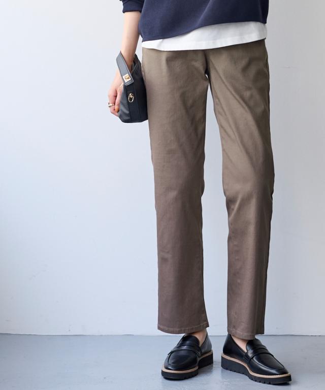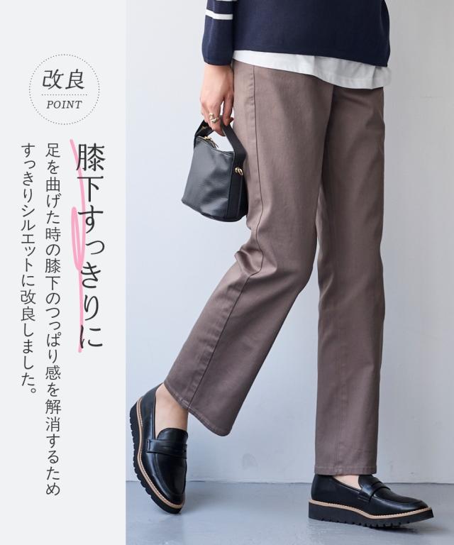 ストレートパンツ レディース すごのび ストレッチ ツイル ストレート パンツ ゆったり太もも 股下73cm 秋 美脚 ボトムス ズボン | S/M | ニッセン nissen